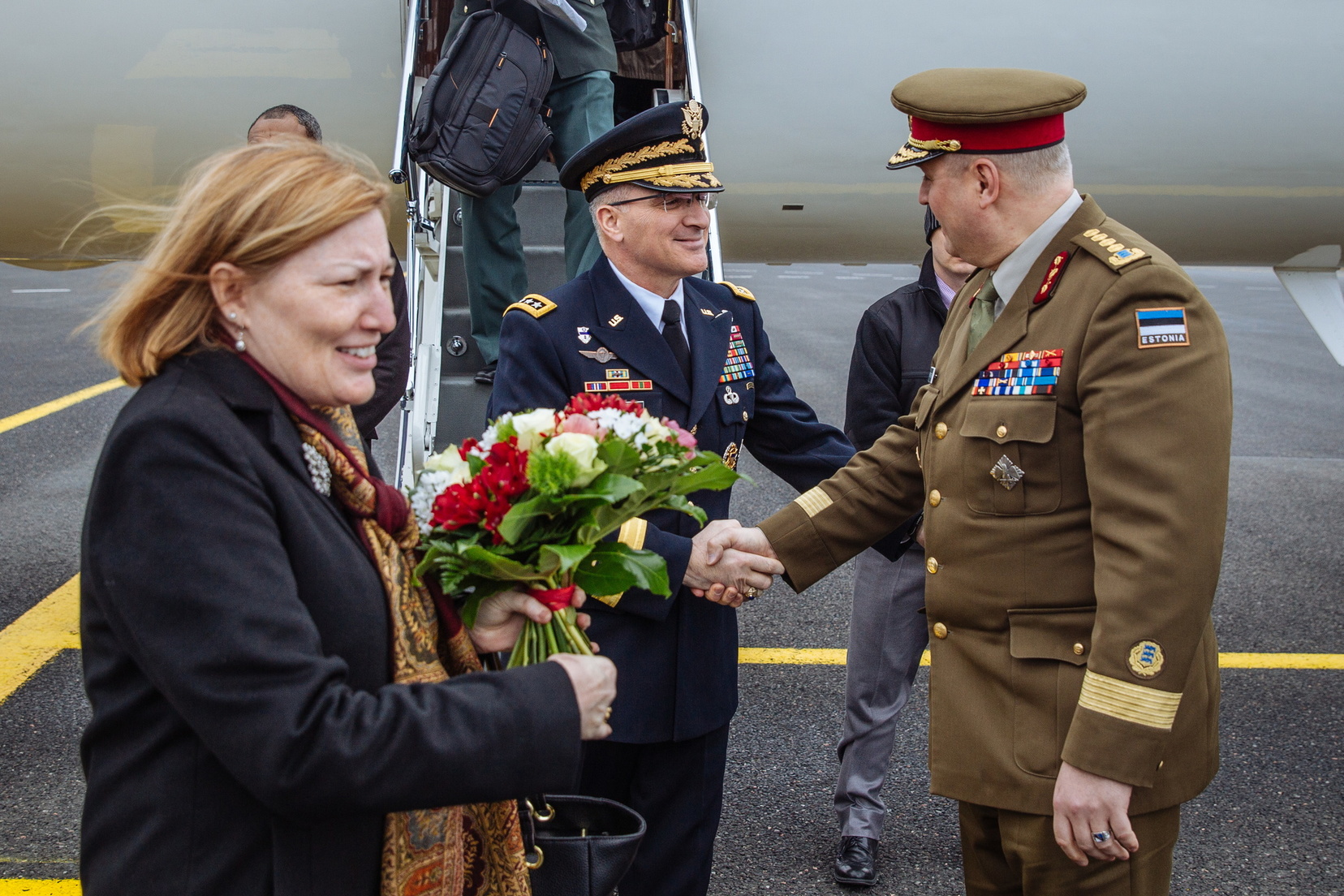 TALLINN, Estonia - GEN Curtis M. Scaparrotti, U.S. European Command, Commander (center) greets GEN Riho Terras, Chief of Defense, Estonia (right) upon his arrival to the nations capital Mar. 14, 2017. Scaparrotti's visit demonstrates EUCOM's support for the trans-Atlantic alliance and specifically the nations in the Baltic Region. (Courtesy photo)