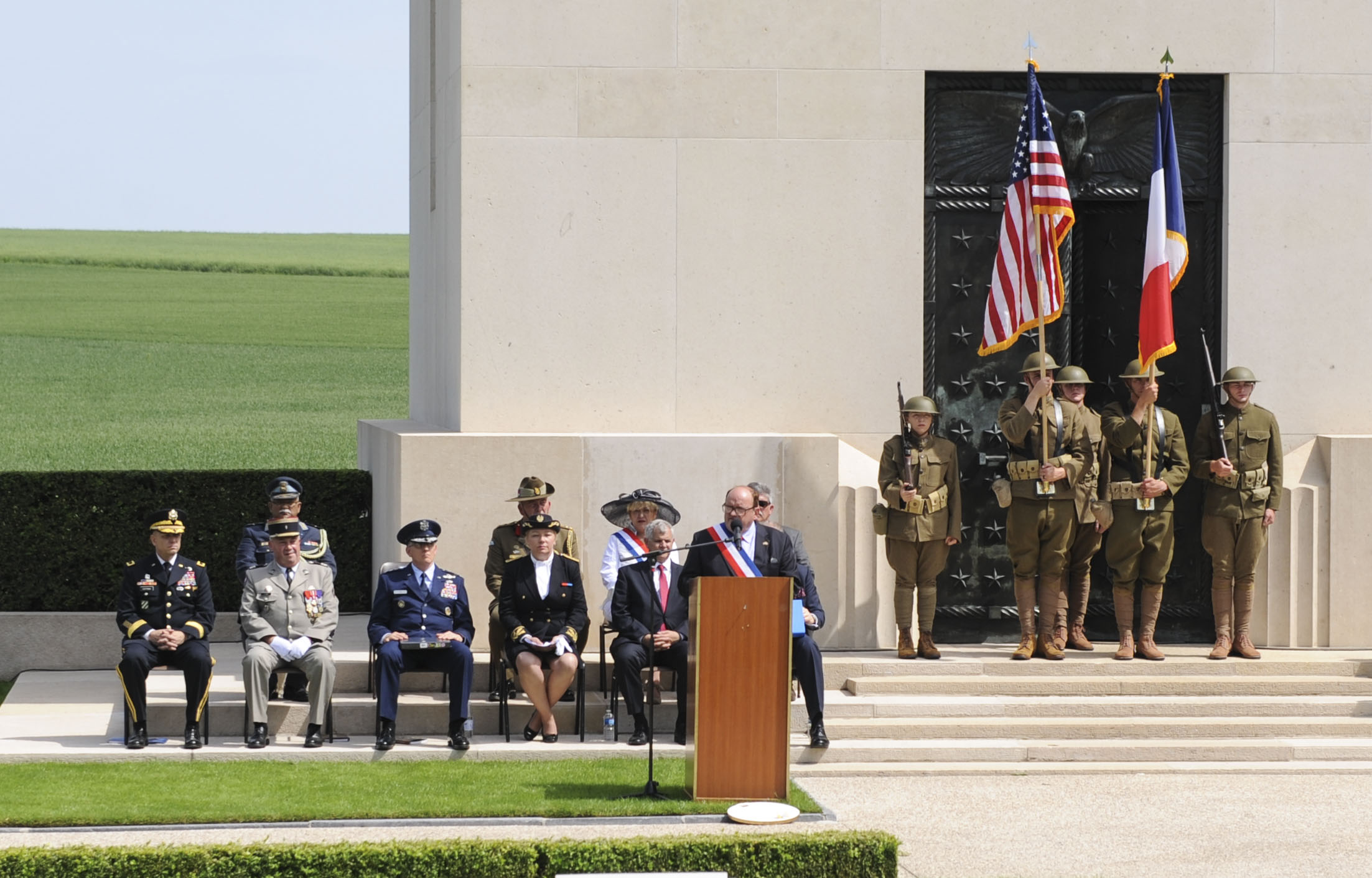 SAINT-QUENTIN, France (May 26, 2018) Mr. Philippe Gyselinck, Mayor of Bony, Aisne in France, gives a memorial address at the Somme American Cemetery and Memorial. This week's memorial ceremonies honor the American fallen that fought and died 100 years ago. (U.S. Navy photo by Mass Communication Specialist 2nd Class Deanna C. Gonzales/Released)