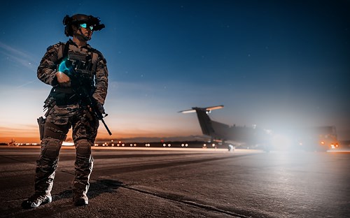 A communications specialist from the 27th Special Operations Mission Support Group Mision Sustainment Team stands watch over a U-28A Draco aircraft during Exercise Trojan Footprint at 93rd Air Base Zemunik, Croatia, May 11, 2022. Trojan Footprint is the premier Special Operations Forces (SOF) exercise in Europe that focuses on improving the ability of SOF to counter myriad threats, increases integration with conventional forces and enhances interoperability with our NATO allies and European partners.(U.S. Air Force photo by Staff Sgt. Candin Muniz)(U.S. Air Force photo by Staff Sgt. Candin Muniz)
