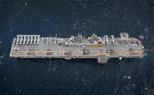 NORTH ATLANTIC OCEAN (April 4, 2022) - The Wasp-class amphibious assault ship USS Kearsarge (LHD 3) transits the Atlantic Ocean during exercise Northern Viking 22, April 4, 2022. Northern Viking 22 strengthens interoperability and force readiness between the U.S., Iceland and allied nations, enabling multi-domain command and control of joint and coalition forces in the defense of Iceland and Sea lines of Communication in the Greenland, Iceland, United Kingdom (GIUK) gap. (U.S. Navy photo by Mass Communication Specialist 3rd Class Jesse Schwab)