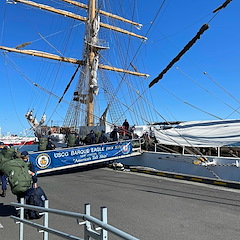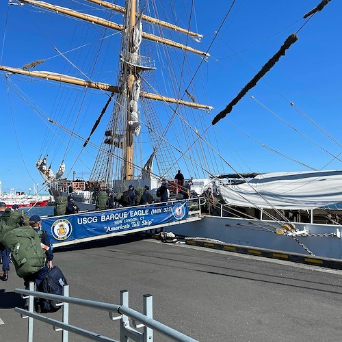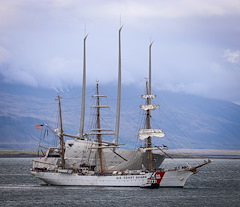 Phase 2 cadets board USCGC Eagle (WIX 327), "America's Tall Ship," in Reykjavik, Iceland, on June 12, 2021. Eagle is currently conducting summer U.S. Coast Guard Academy cadet training in at-sea leadership and professional development. Their first port call was Portugal in late May. Eagle has served as a classroom at sea to future Coast Guard officers since 1946, offering an at-sea leadership and professional development experience as part of the Coast Guard Academy curriculum. (U.S. Coast Guard photo by Lt. Stephanie Jocis)