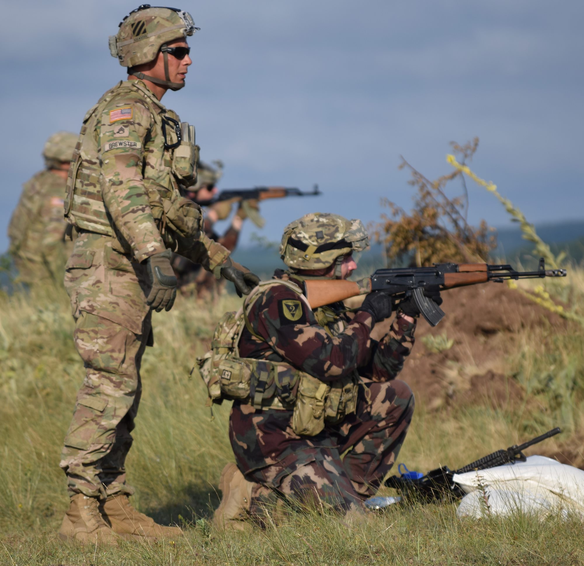 A Trooper from 5th Squadron, 7th Calvary Regiment, 1st Armored Brigade Combat Team, 3rd Infantry Division observes a Hungarian Soldier engage a target during a stress at Camp Ujamajor, Hungary July 13, 2016. The Troopers are in Hungary as a part of Operation Atlantic Resolve, a demonstration of continued U.S. commitment to the collective defense of Europe through a series of actions designed to reassure NATO allies and partners of our dedication to enduring peace and stability in the region.