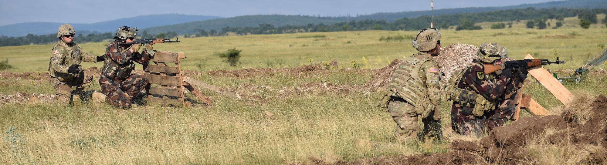 Troopers from 5th Squadron, 7th Calvary Regiment, 1st Armored Brigade Combat Team, 3rd Infantry Division do 3-5 second buddy rushes during a stress shoot at Camp Ujamajor, Hungary July 13, 2016. The Troopers are in Hungary as a part of Operation Atlantic Resolve, a demonstration of continued U.S. commitment to the collective defense of Europe through a series of actions designed to reassure NATO allies and partners of our dedication to enduring peace and stability in the region.