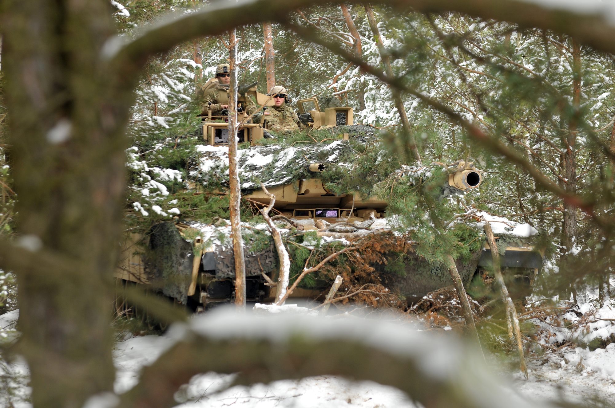 Whether they are training in a desert environment or the forested hills of Poland, the Soldiers assigned to 1st Battalion, 68th Armor Regiment, 3rd Armored Brigade, 4th Infantry Division trained on camouflaging several Bradley Fighting Vehicles and M1 Abram Tanks, Jan. 20, at Presidential Range in Swietozow, Poland.