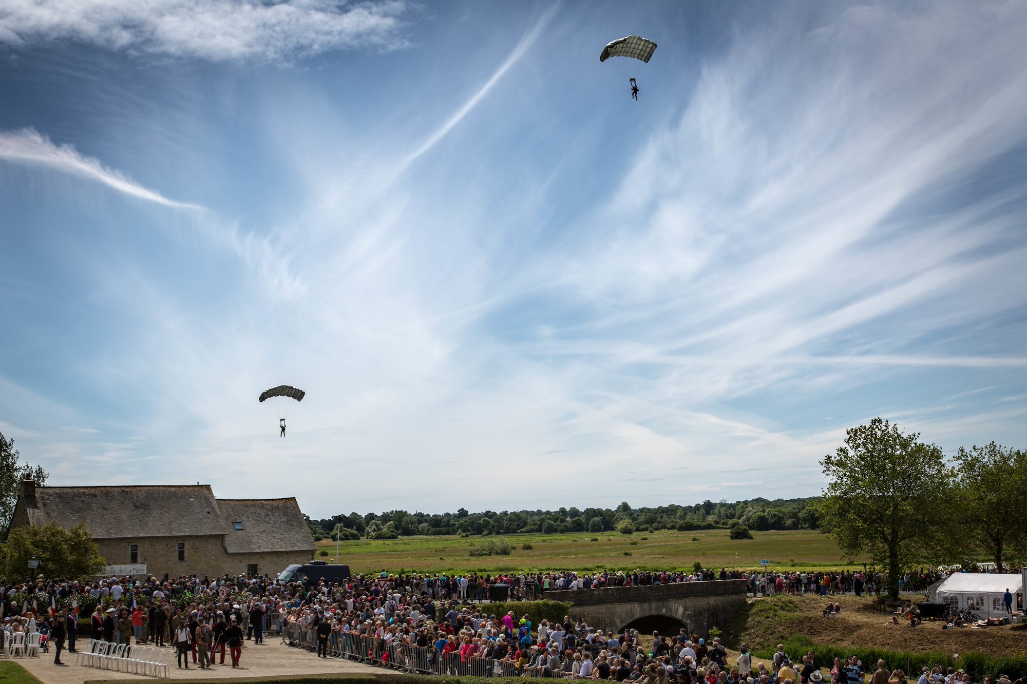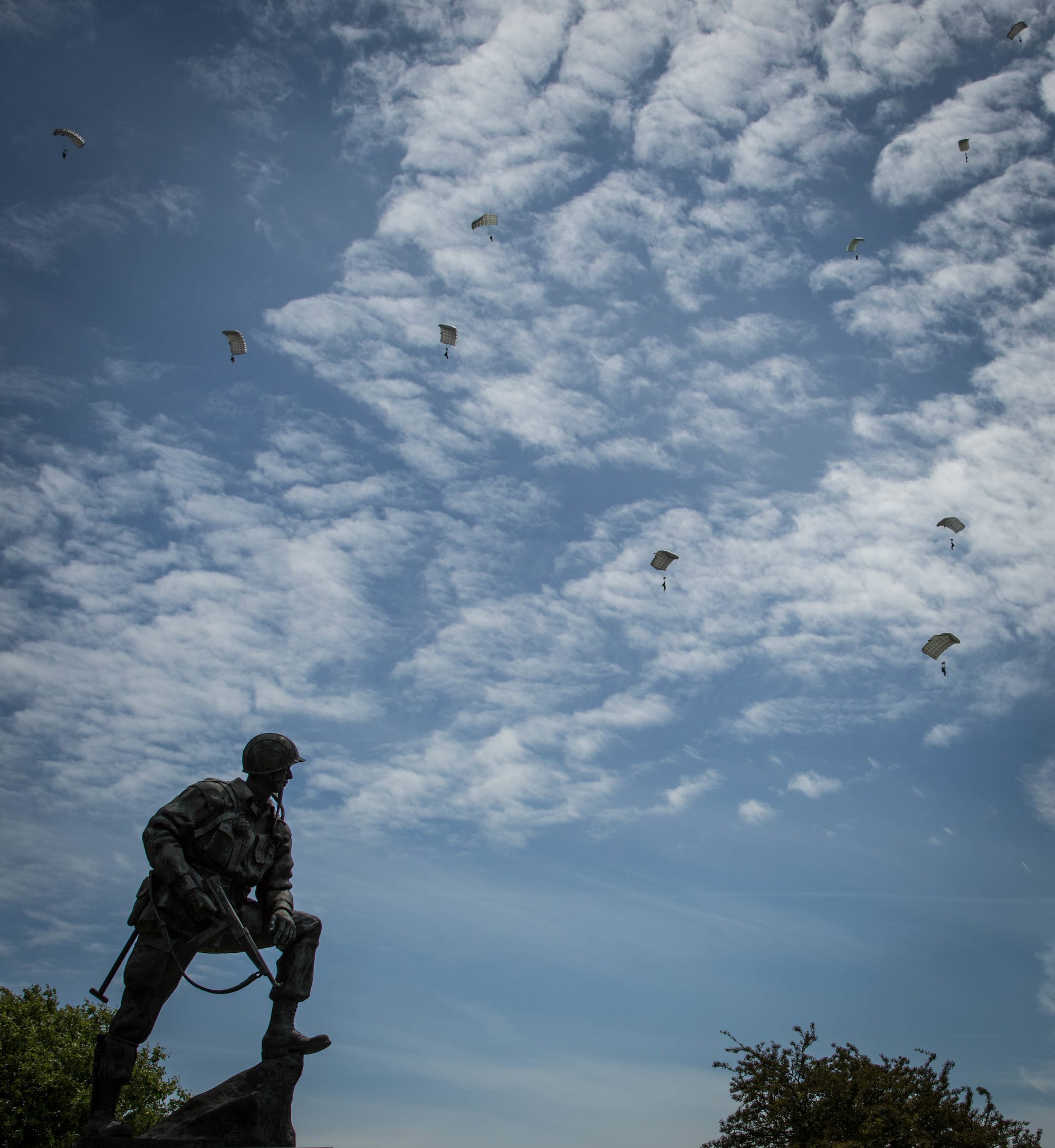 Soldiers of the 82nd Airborne Division participate in a comemmorative D-Day jump near St. Mere-Eglise, France. U.S. Army photo by Spc. Agacinski/released.