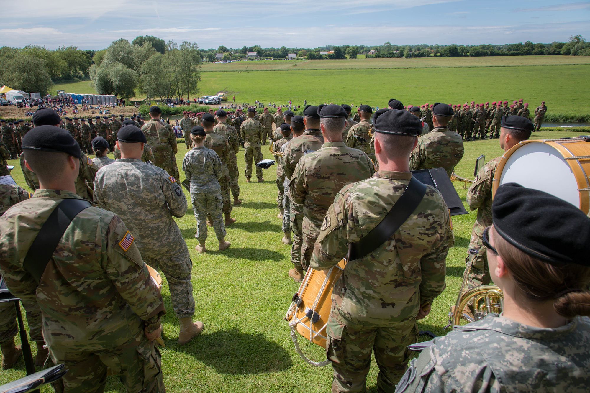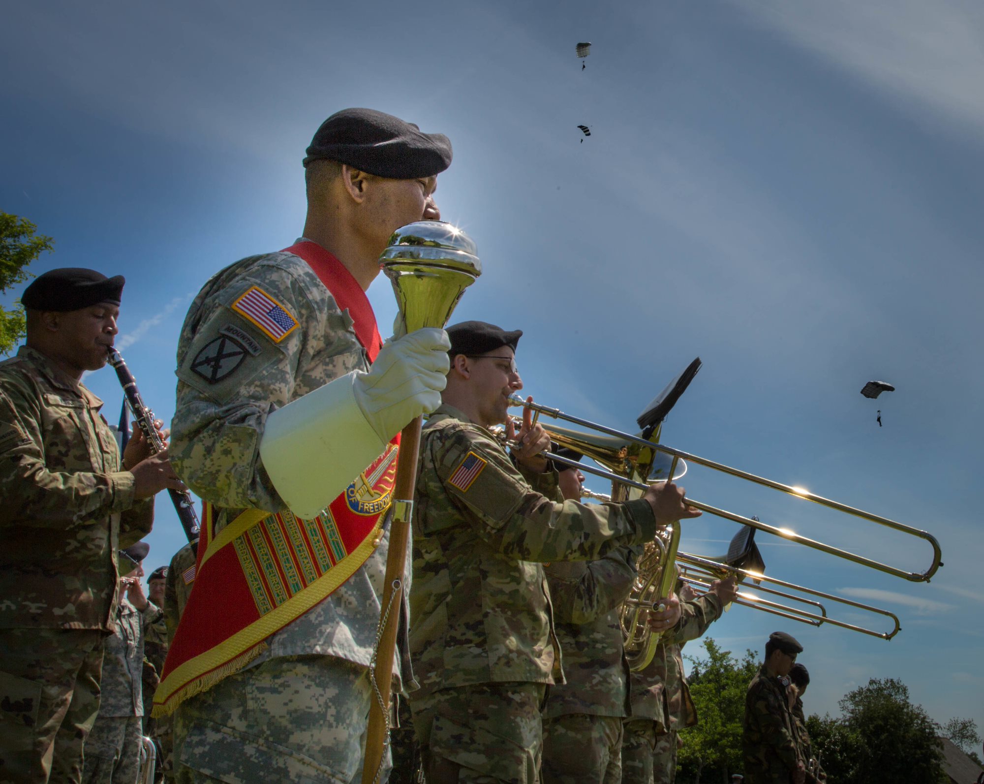 The USAREUR Band performs while soldiers of the 82nd Airborne division participate in a commemorative D-Day jump. U.S. Army photo by Spc. Joseph Agacinski/released.