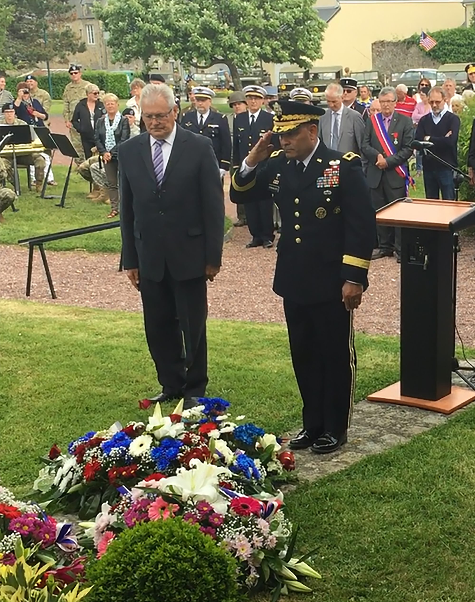 The Soldiers served as guests of honor at the ceremony, where Gonsalves and community leaders laid wreaths at the Montebourg memorial.