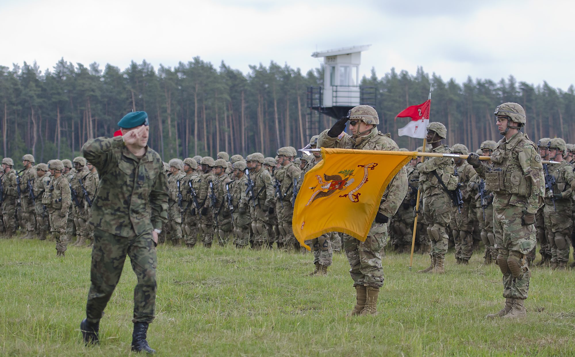 During the ceremony, Polish Brig. Gen. Jaroslaw Gromadziński, Commander, 15th Mechanized Brigade, addressed the battle group formation that was comprised of Soldiers from Canada, Lithuania, Poland, Romania, United States and the United Kingdom.