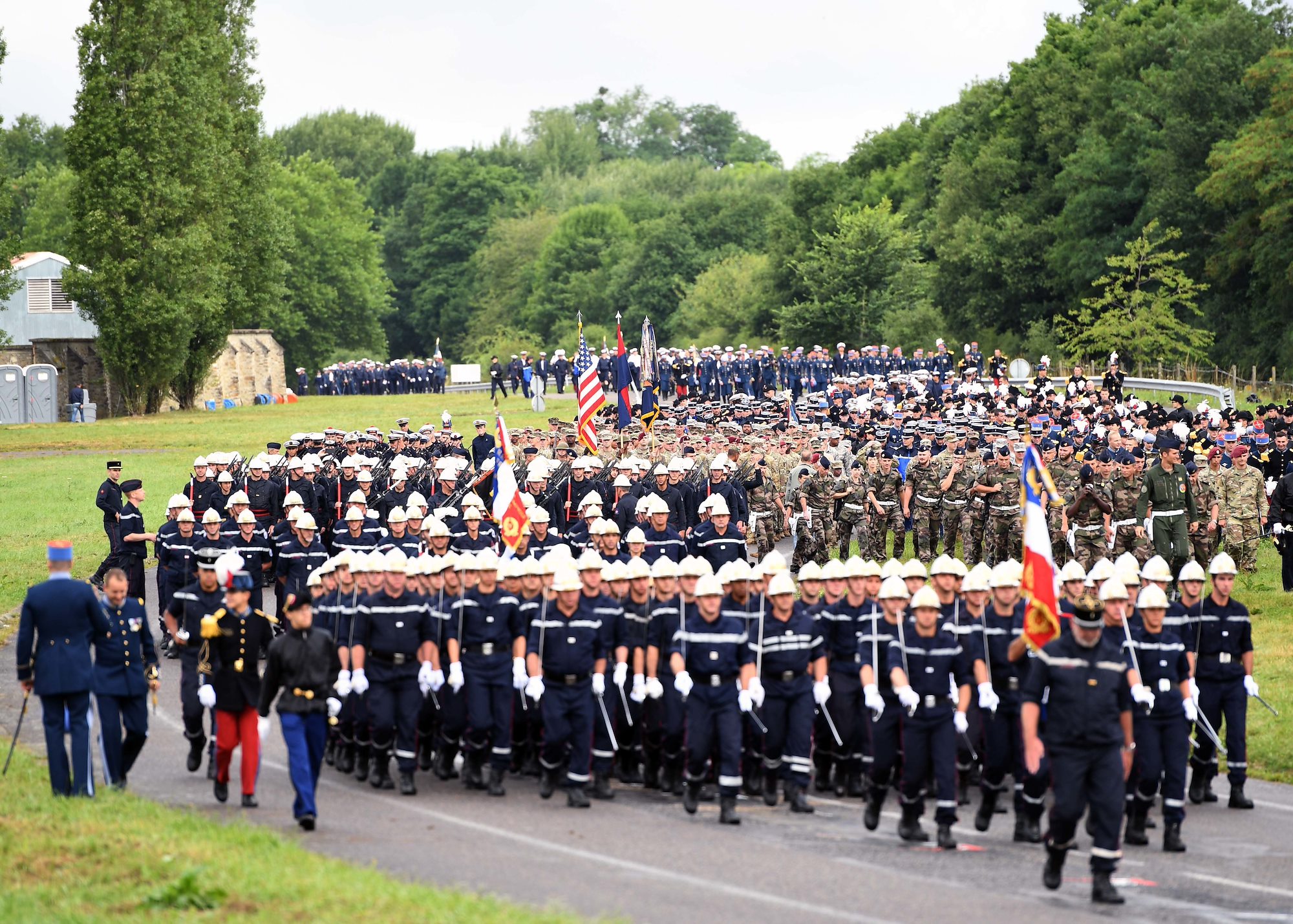 SATORY, France (July 12, 2017) The U.S. formation marching in the Military Parade on Bastille Day in Paris, France, July 14, 2017, is reviewed as part of the final rehearsal. This year, the U.S. will lead the parade as the country of honor in commemoration of the centennial of U.S. entry into World War I – as well as the long-standing partnership between France and the U.S. (U.S. Navy photo by Chief Mass Communication Specialist Michael McNabb/Released)