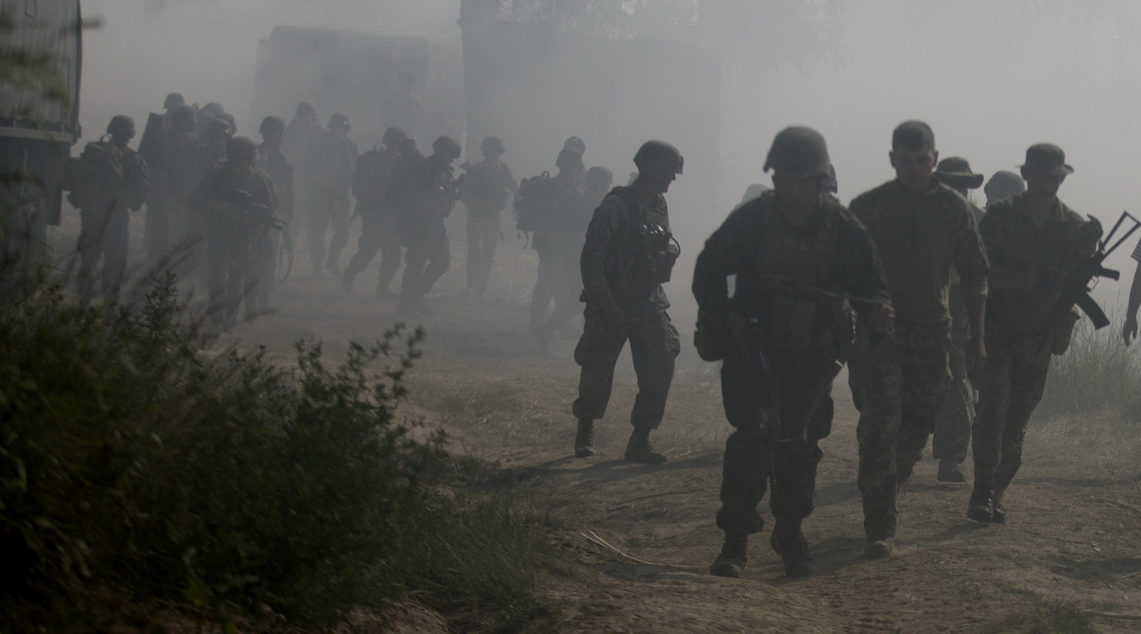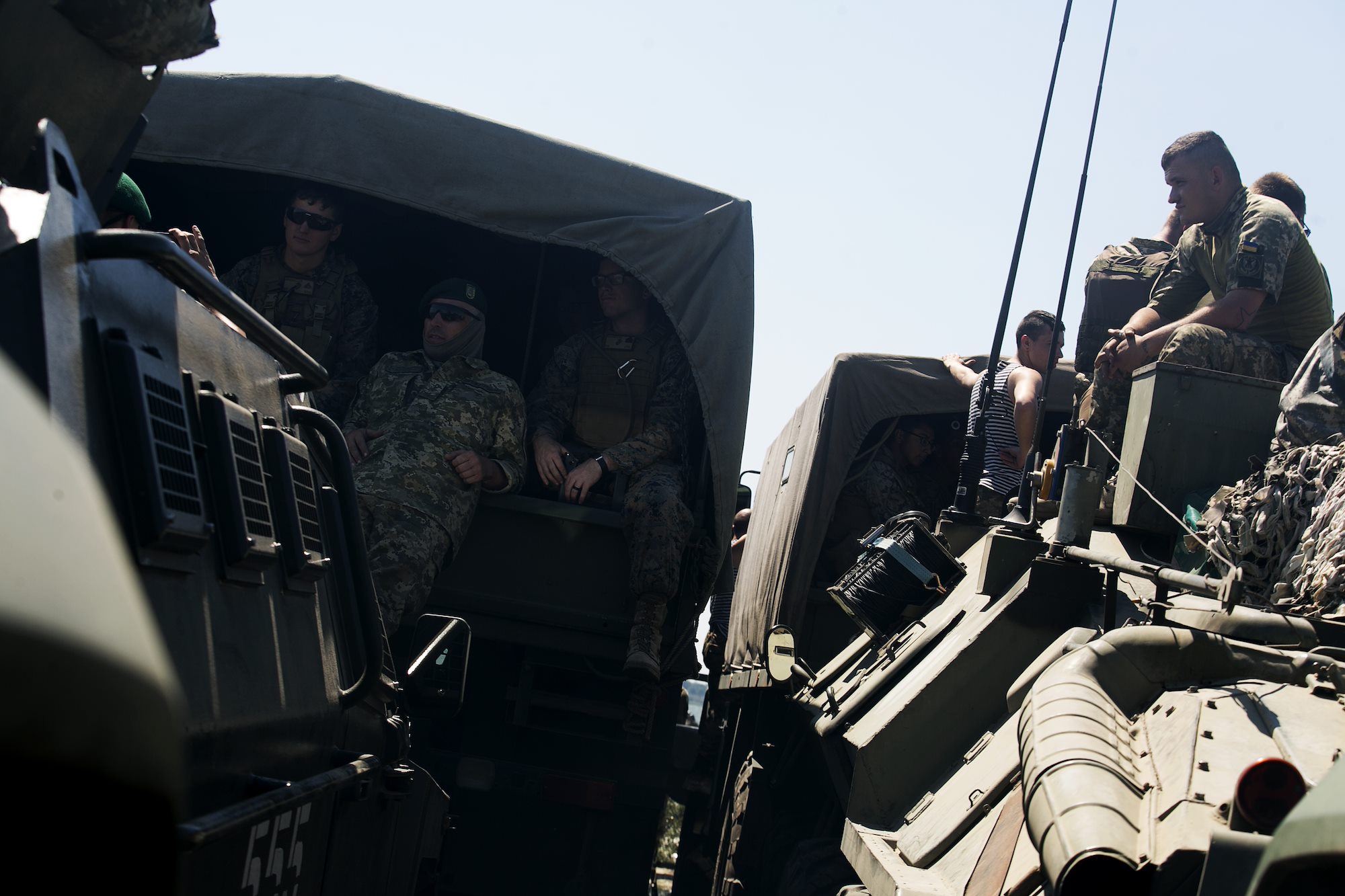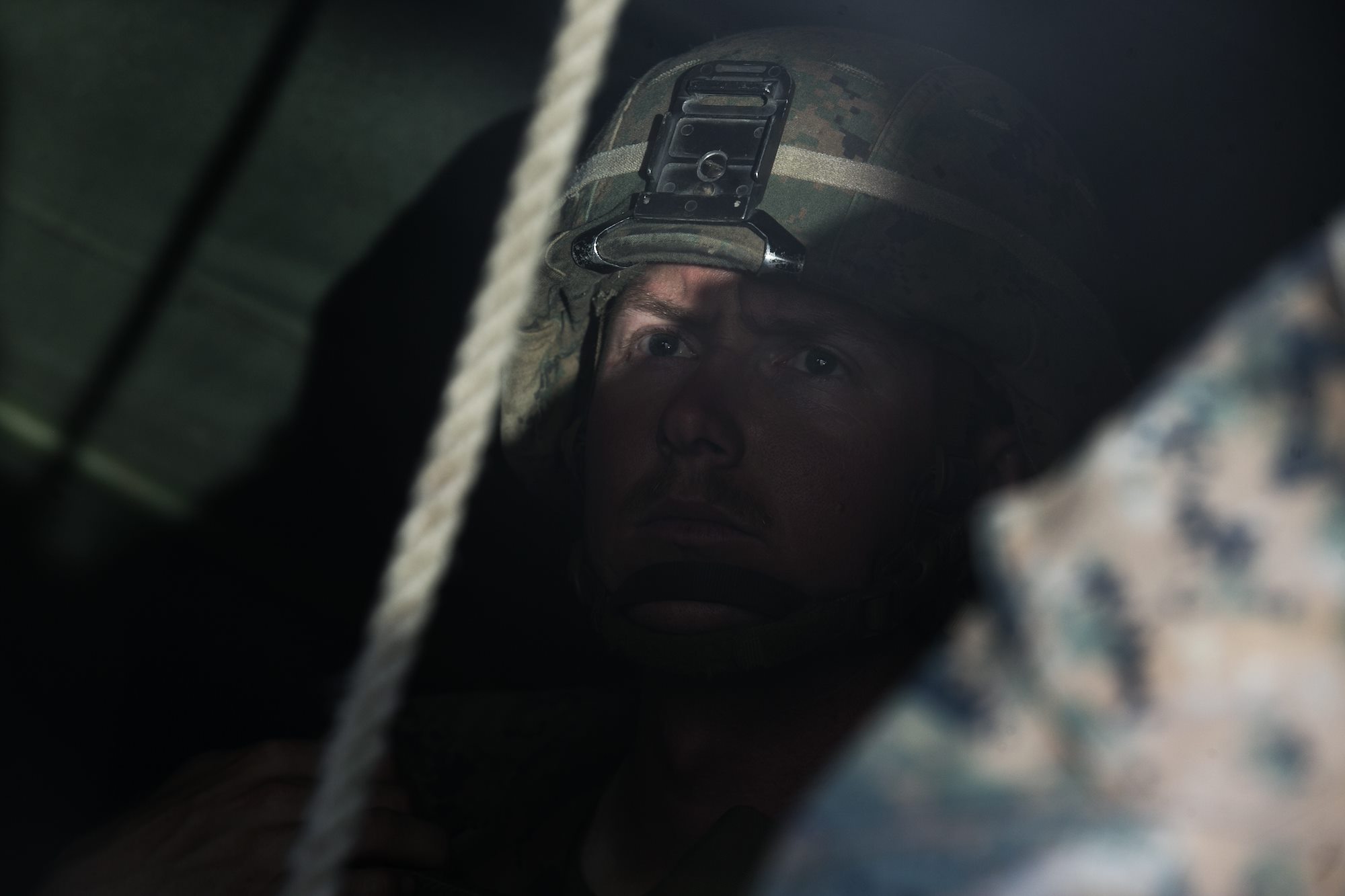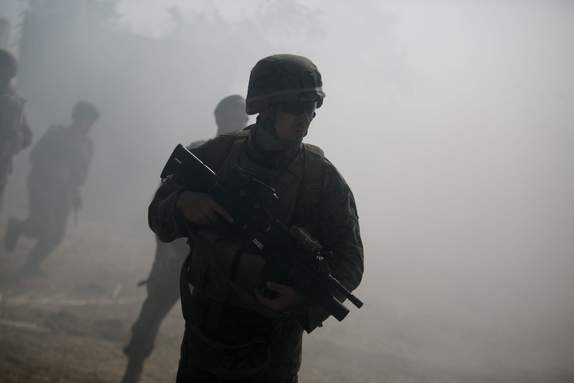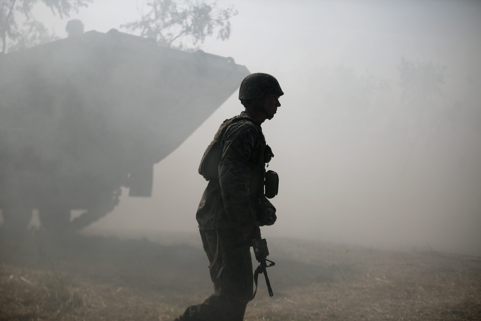A U.S. Marine assigned to U.S. Marine Corps Forces Europe and Africa takes the beach after an amphibious landing in Nikolaev, Ukraine, during exercise Sea Breeze 2017, July 19. Sea Breeze is a U.S. and Ukraine co-hosted multinational maritime exercise held in the Black Sea and is designed to enhance interoperability of participating nations and strengthen maritime security within the region. (U.S. Marine Corps photo by Cpl. Sean J. Berry/Released)