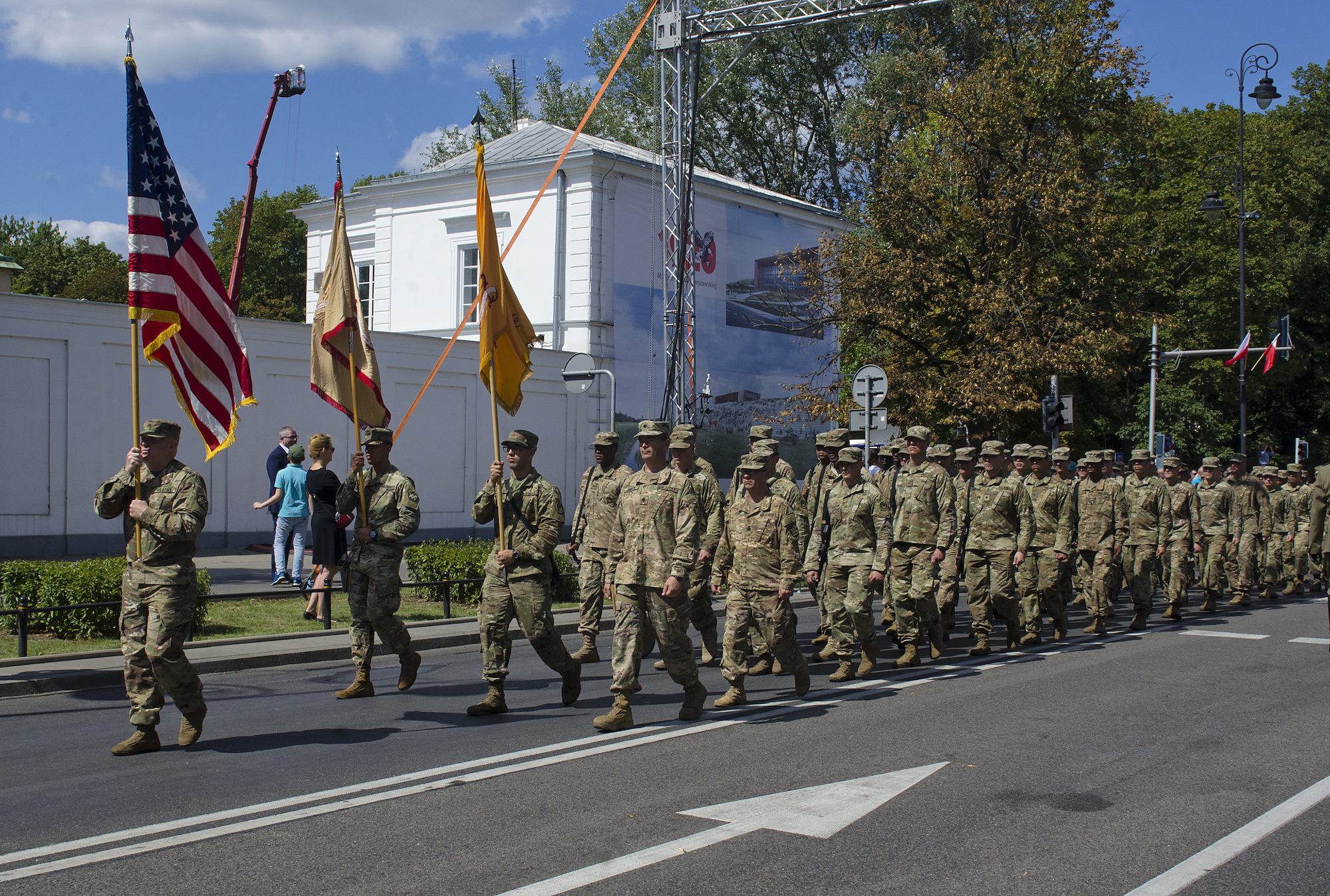 The parade also included a variety of Polish and U.S. aircraft, a polish re-enactment formation and a Polish Cavalry unit, which demonstrated that Soldiers in the Alliance training together to deter any potential aggression, those Soldiers also celebrate local customs and traditions together.