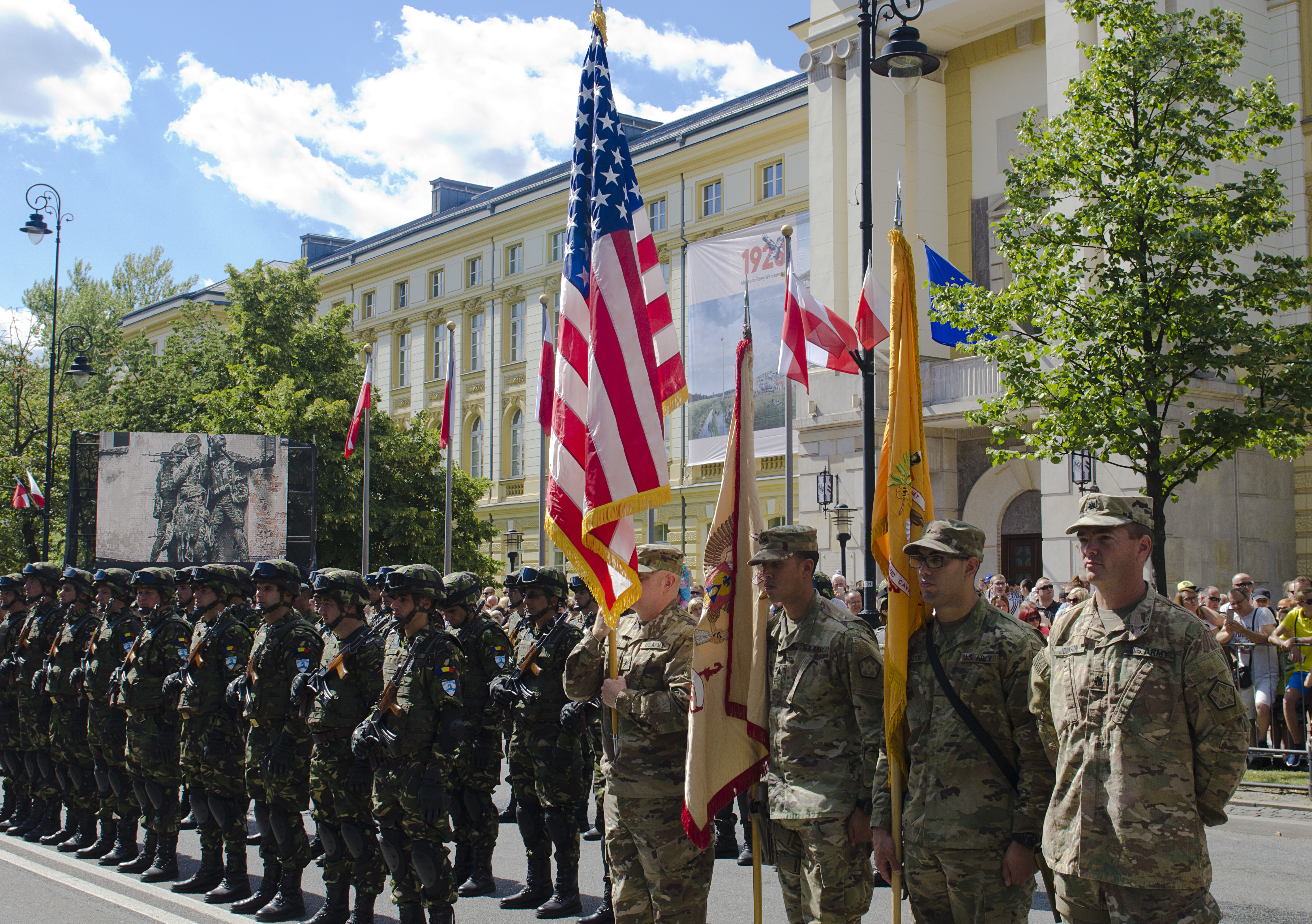 President of the Republic of Poland, Andrzej Duda; Minister of National Defense, Antoni Macierewicz; U.S. Ambassador to Poland, Paul W. Jones; Commanding General of U.S. Army Europe, Lt. Gen. Ben Hodges; other military delegates and political officials stood shoulder-to-shoulder to commemorate the 97th anniversary of the Polish victory over Soviet Russia in 1920 during the Battle of Warsaw.