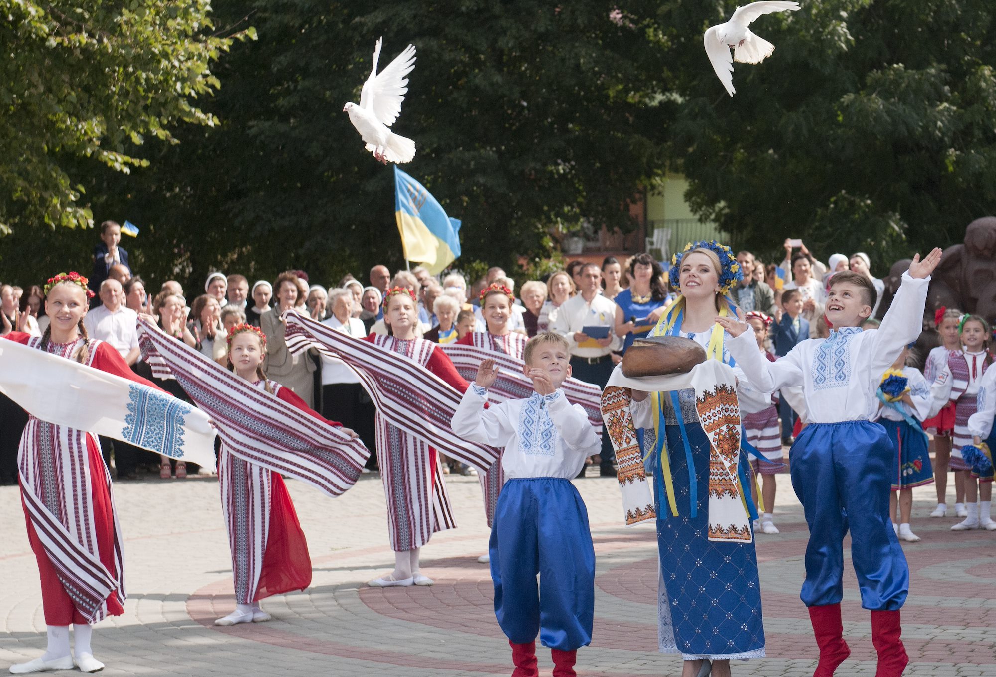 Ukrainian children release doves at the conclusion of a celebration on Ukraine’s 26th Independence Day in Yavoriv, Ukraine on Aug. 24. The town held the ceremony to celebrate Ukraine's declaration of independence from the Soviet Union in 1991 and to honor the region’s history, people, military and honored dead through a series of speeches, musical performances, dances, and prayers. (Photo by Staff Sgt. Eric McDonough, 45th Infantry Brigade Combat Team)