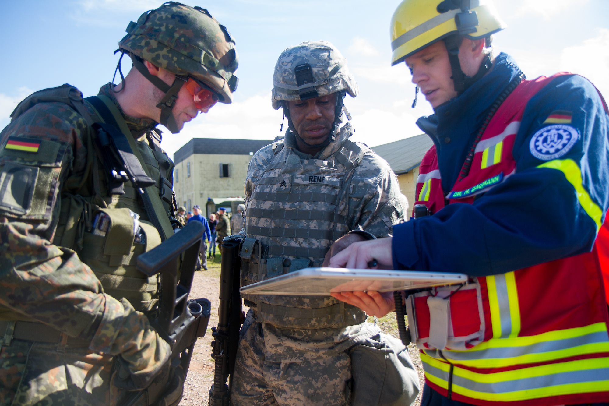 This exercise led by C Co., 457th Civil Affairs Battalion, tested civil affairs teams’ ability to assess, direct, and liaise with Bundeswehr's Sanitätsstaffel Einsatz from Colonge, a German military medical service unit; Technisches Hilfswerk of Frankenthal, a German civil protection agency; and American Red Cross Wiesbaden in a scenario that required these organizations to respond to a fictitious town two days after an earthquake. Developments included injured personnel in damaged buildings needing extraction, gas leaks, polluted water, and unrest amongst civil authorities and leaders with responders.