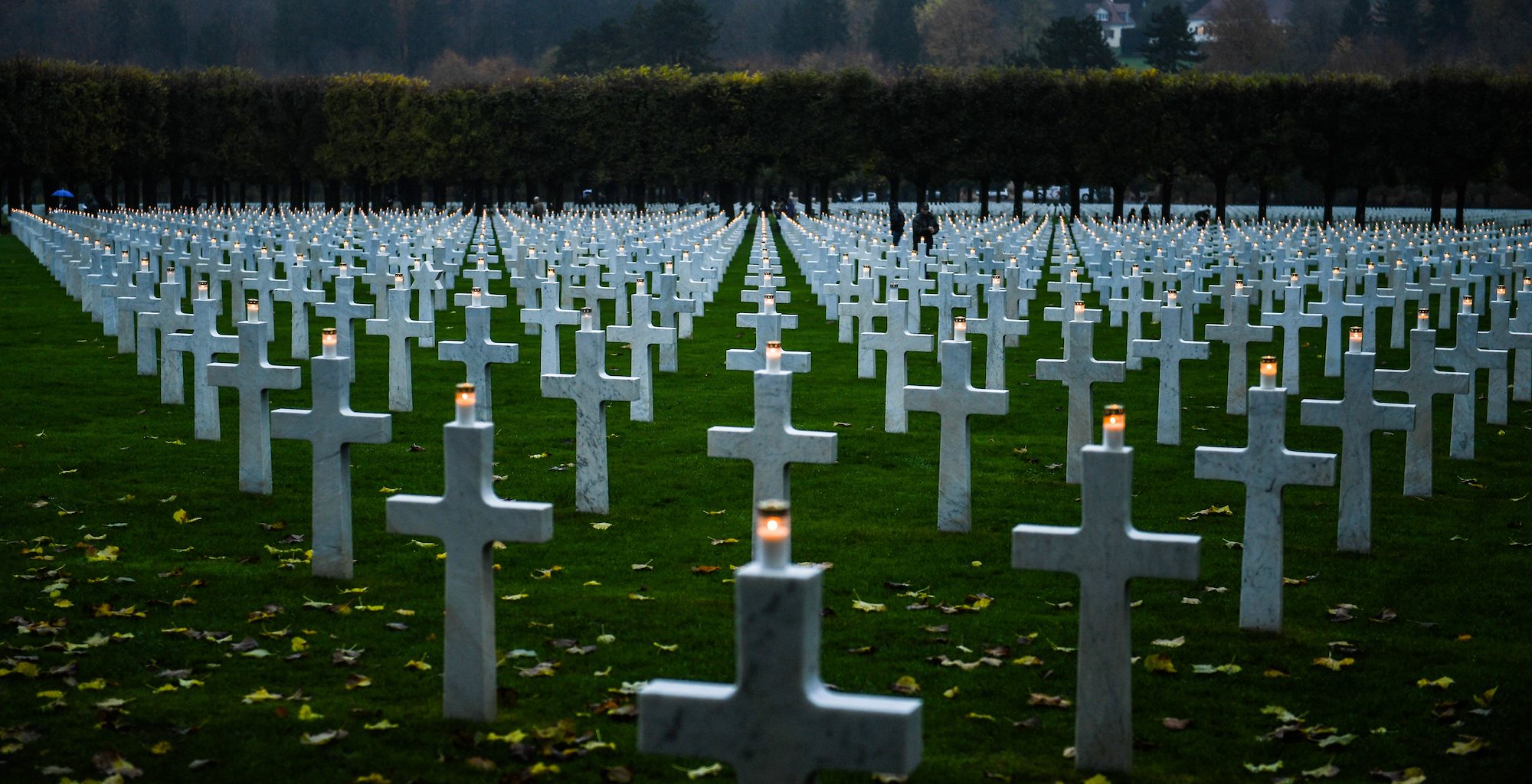 In remembrance of the lives lost during World War I, dozens of French, American, Dutch and German volunteers arrived hours before nightfall to place candles at 3,500 headstones in the Meuse-Argonne American Cemetery and Memorial, Romagne-sous-Montfaucon, France, Nov. 11, 2017 – known as Remembrance Day in France.