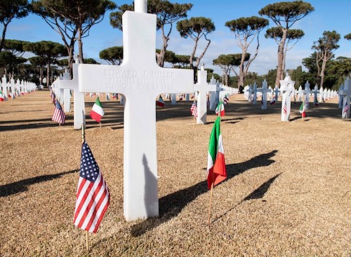 NETTUNO, Italy -- The American Battle Monuments Commission (ABMC) hosted a ceremony to commemorate the 75th anniversary of the Allied Landings at Anzio and Nettuno Jan. 22 at the Sicily-Rome American Cemetery. The ceremony kicks off a year of scheduled events to commemorate the 75th anniversary of WWII. It honored the almost 11,000 Americans who died fighting to liberate Italy and included a wreath laying, sharing of individual stories of people buried or memorialized at the cemetery, performances by the Italian Military band and U.S. Naval Forces Europe Band. The day concluded with a luminary where every headstone and name on the walls of the missing were illuminated with candles.