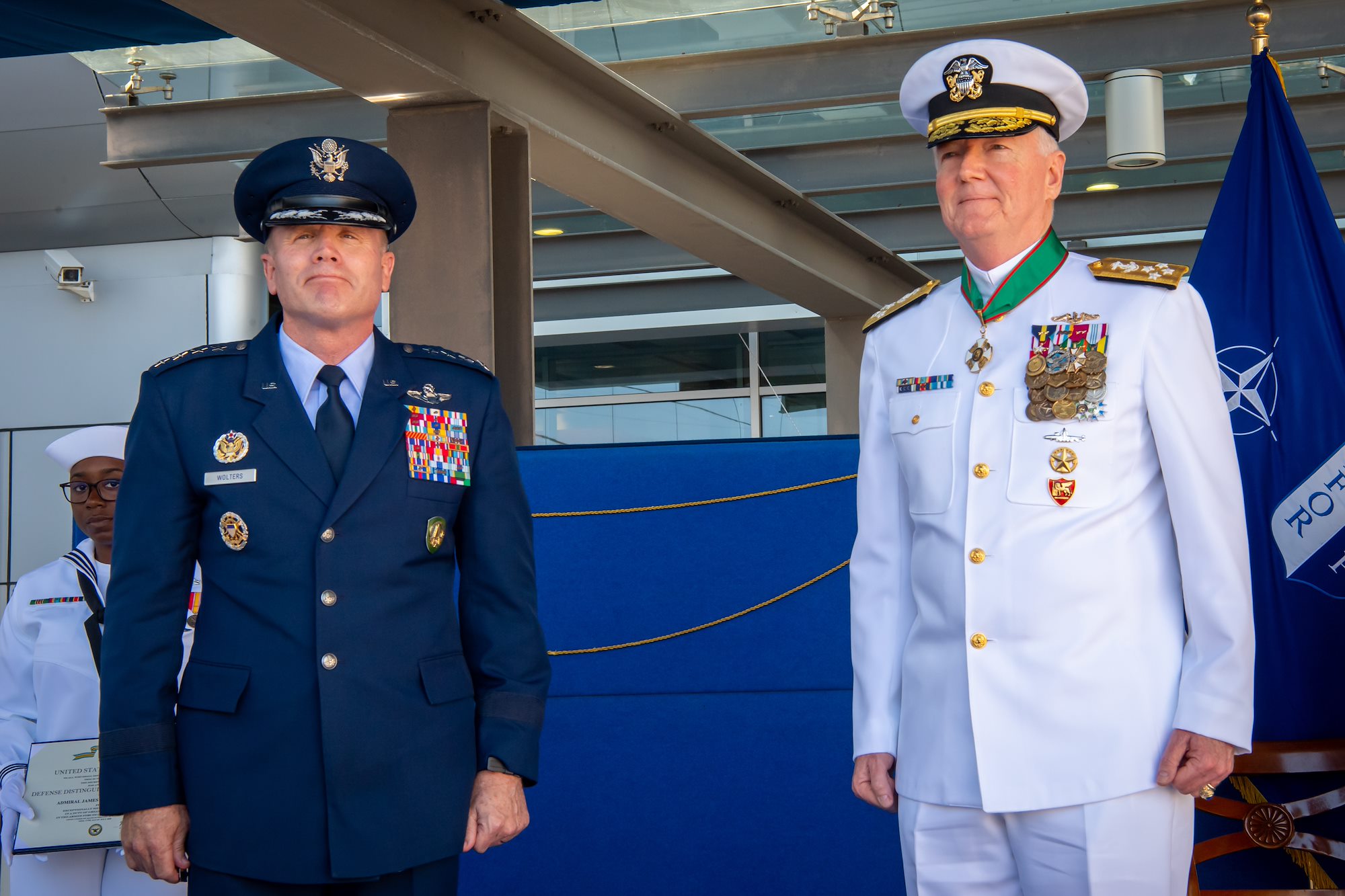 U.S. Air Force Gen. Tod D. Wolters, NATO’s Supreme Allied Commander Europe (SACEUR), and commander, U.S. European Command, presented Foggo with the Defense Distinguished Service Medal for his exceptional service and contribution to the national security of the United States, while serving as commander of CNE-CNA and JFC Naples.