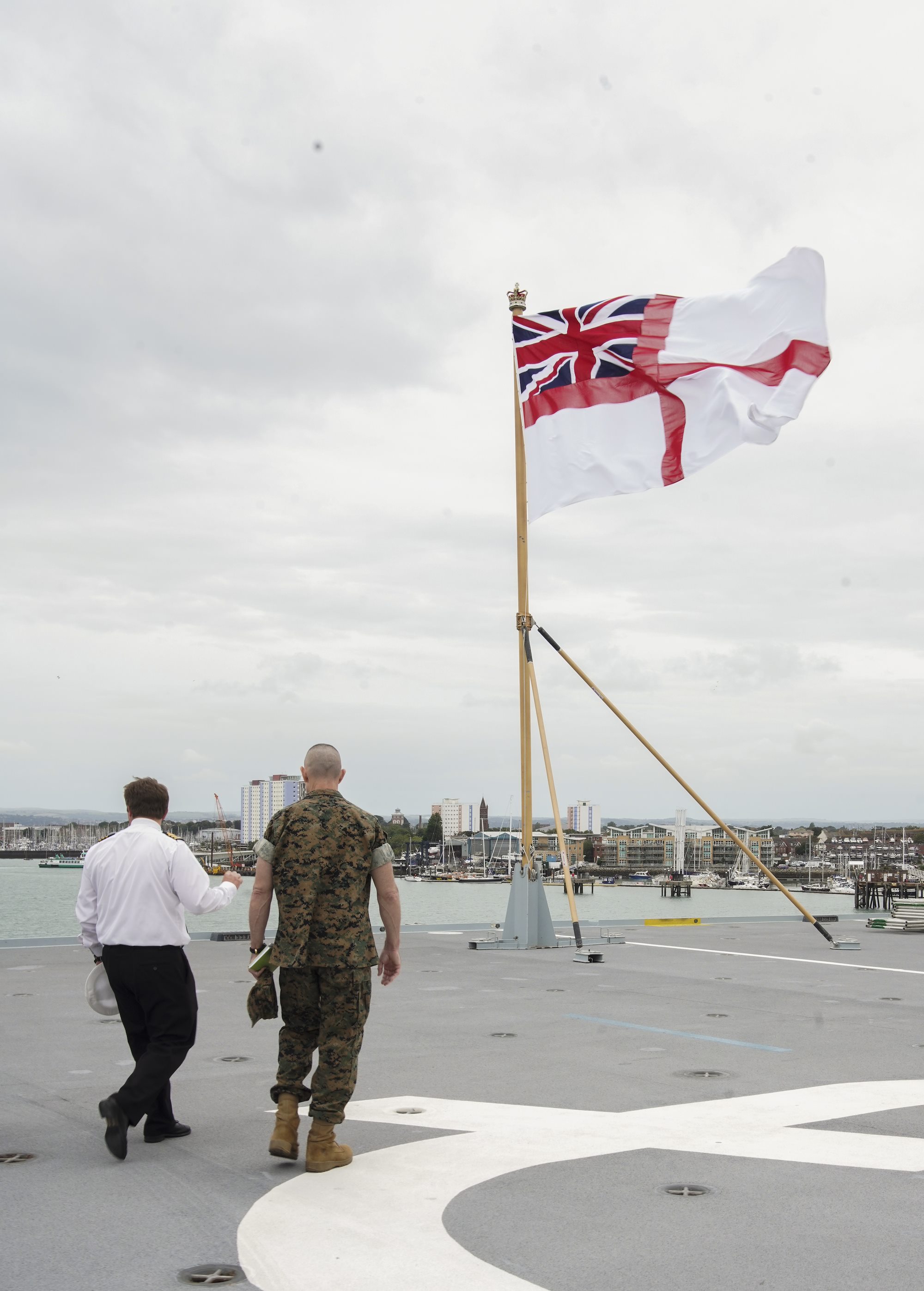 During the visit, Neary met with the carrier’s leadership and toured the HMS Queen Elizabeth to increase understanding of the U.S. Marine Corps’ future operations with the UK Carrier Strike Group. U.S. Marines from Marine Fighter Attack Squadron (VMFA) 211, along with approximately six F-35B aircraft, will support the ship’s inaugural deployment in 2021. VMFA-211 will work alongside the UK’s 617 squadron as Carrier Strike Group-21.