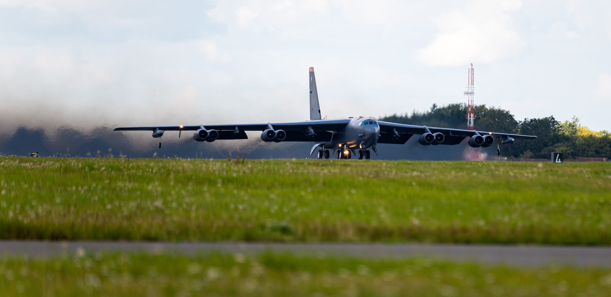 A B-52H Stratofortress takes off form the flightline at RAF Fairford, England, Aug. 31, 2020. The U.S. and Europe must preserve their mutual commitment and trust to each other as they face emerging forces and evolving strategic challenges. (U.S. Air Force photo by Airman 1st Class Jesse Jenny)