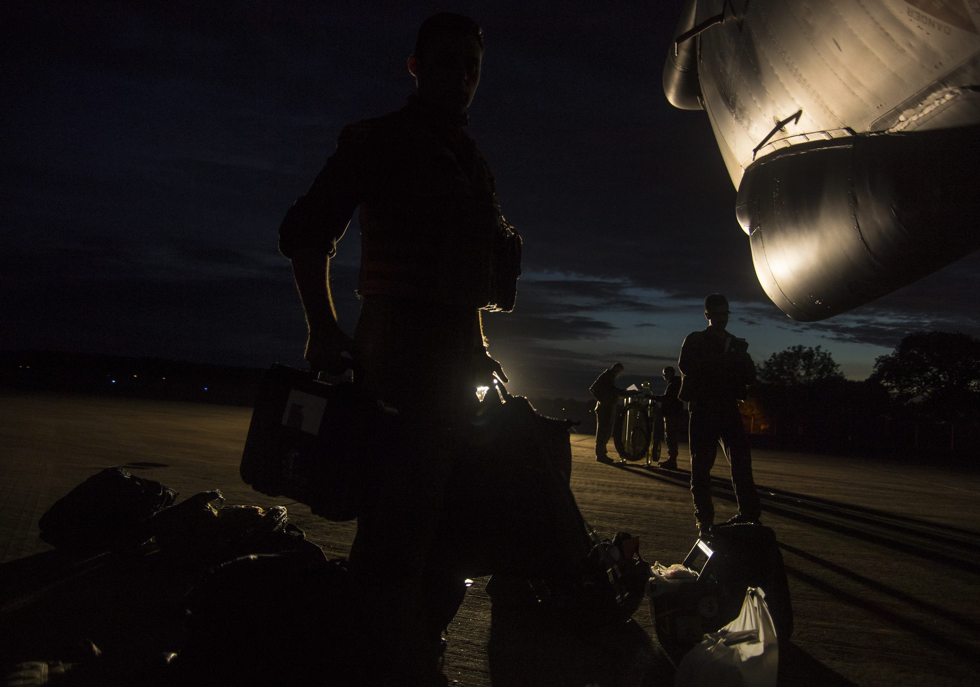 U.S. B-52H Stratofortress aircrew assigned to the 5th Bomb Wing, Minot Air Force Base, North Dakota, load equipment in preparation for a Bomber Task Force Europe mission, Sept. 4, 2020. Operations and engagements with our allies and partners demonstrate and strengthen our shared commitment to global security and stability. (U.S. Air Force photo by Senior Airman Xavier Navarro)