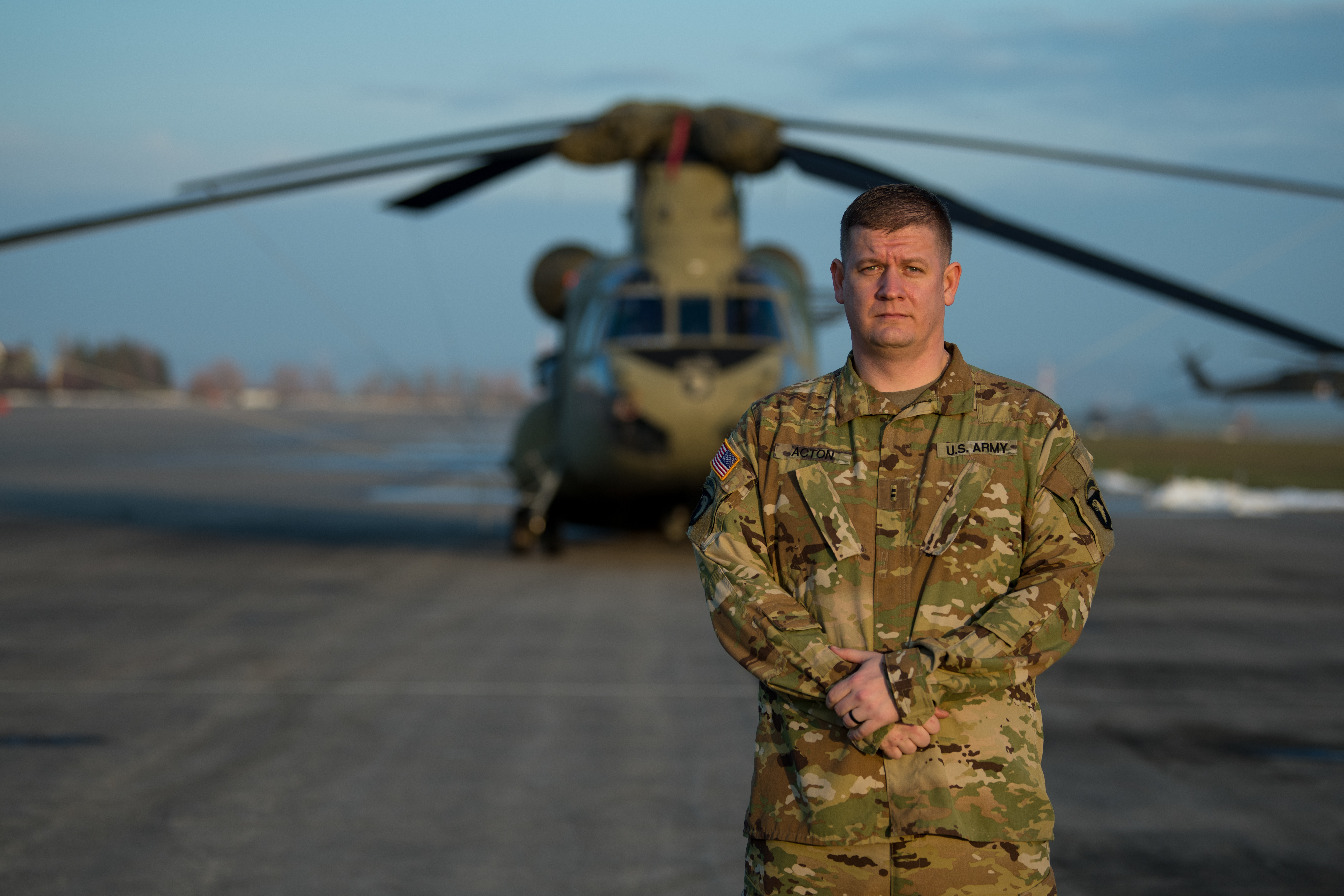 “We were flying over a ridgeline in a rural area,” said Chief Warrant Officer Dave Acton, a pilot. “Once we cleared it, my crew chief in the back came on the comms system and said he saw a puff of white smoke on the road below.”