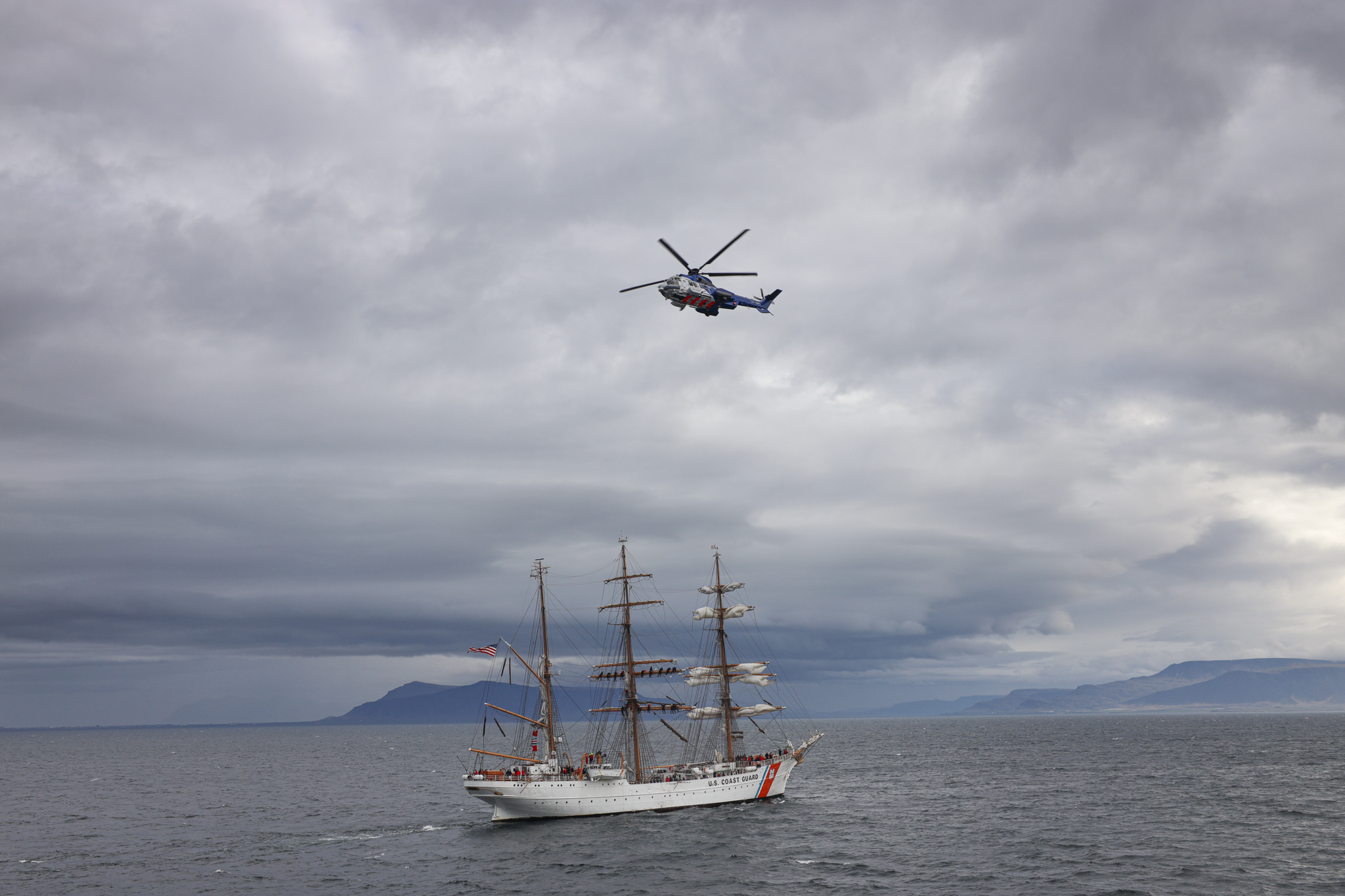 USCGC Eagle (WIX 327), "America's Tall Ship," arrives to Reykjavik, Iceland, June 9, 2021. Eagle is currently conducting summer U.S. Coast Guard Academy cadet training in at-sea leadership and professional development. Their first port call was Portugal in late May. Eagle has served as a classroom at sea to future Coast Guard officers since 1946, offering an at-sea leadership and professional development experience as part of the Coast Guard Academy curriculum. (Photo courtesy U.S. Embassy Reykjavik, Kristjan Petersson)