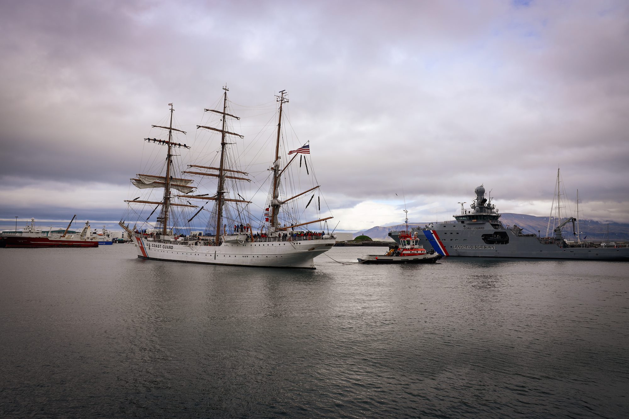 REYKJAVIK, Iceland — USCGC Eagle (WIX 327), "America's Tall Ship," arrived in Reykjavik Wednesday and proceeded to host tours and senior officials through the weekend.