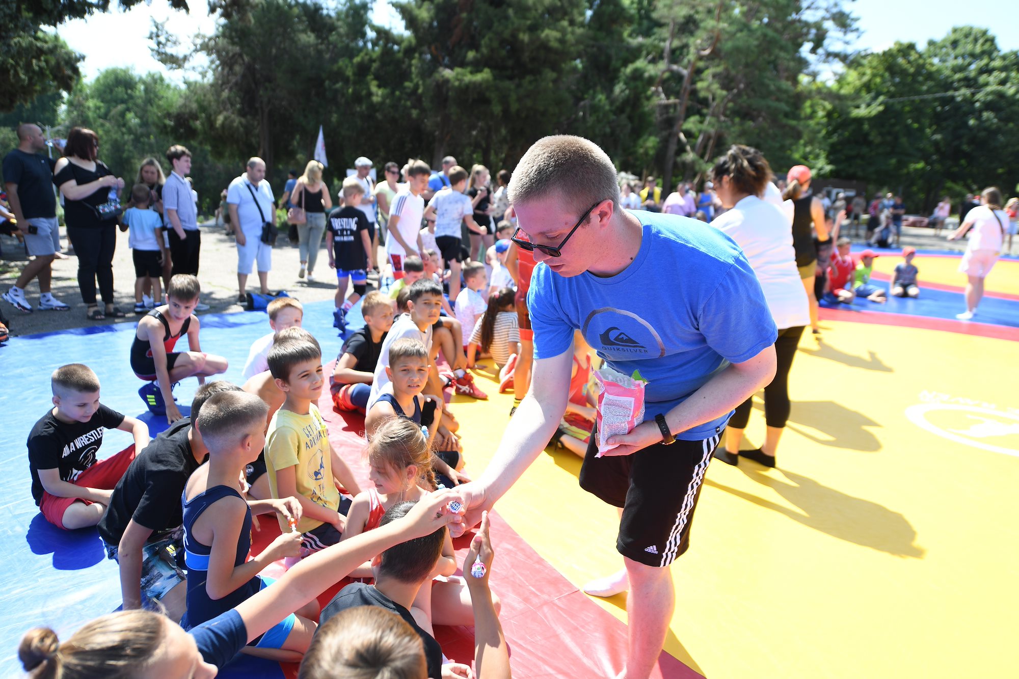 210703-N-VP310-0256 ODESA, Ukraine (July 3, 2021) Sailors from the Arleigh Burke-class guided-missile destroyer USS Ross (DDG 71) interact with Ukrainians in a local park in Odesa, Ukraine during Exercise Sea Breeze 2021, July 3, 2021. Exercise Sea Breeze is a multinational maritime exercise cohosted by U.S. Sixth Fleet and the Ukrainian Navy in the Black Sea since 1997. Sea Breeze 2021 is designed to enhance interoperability of participating nations and strengthen maritime security and peace within the region. (U.S. Navy photo by Mass Communication Specialist 1st Class Richard Hoffner/Released)