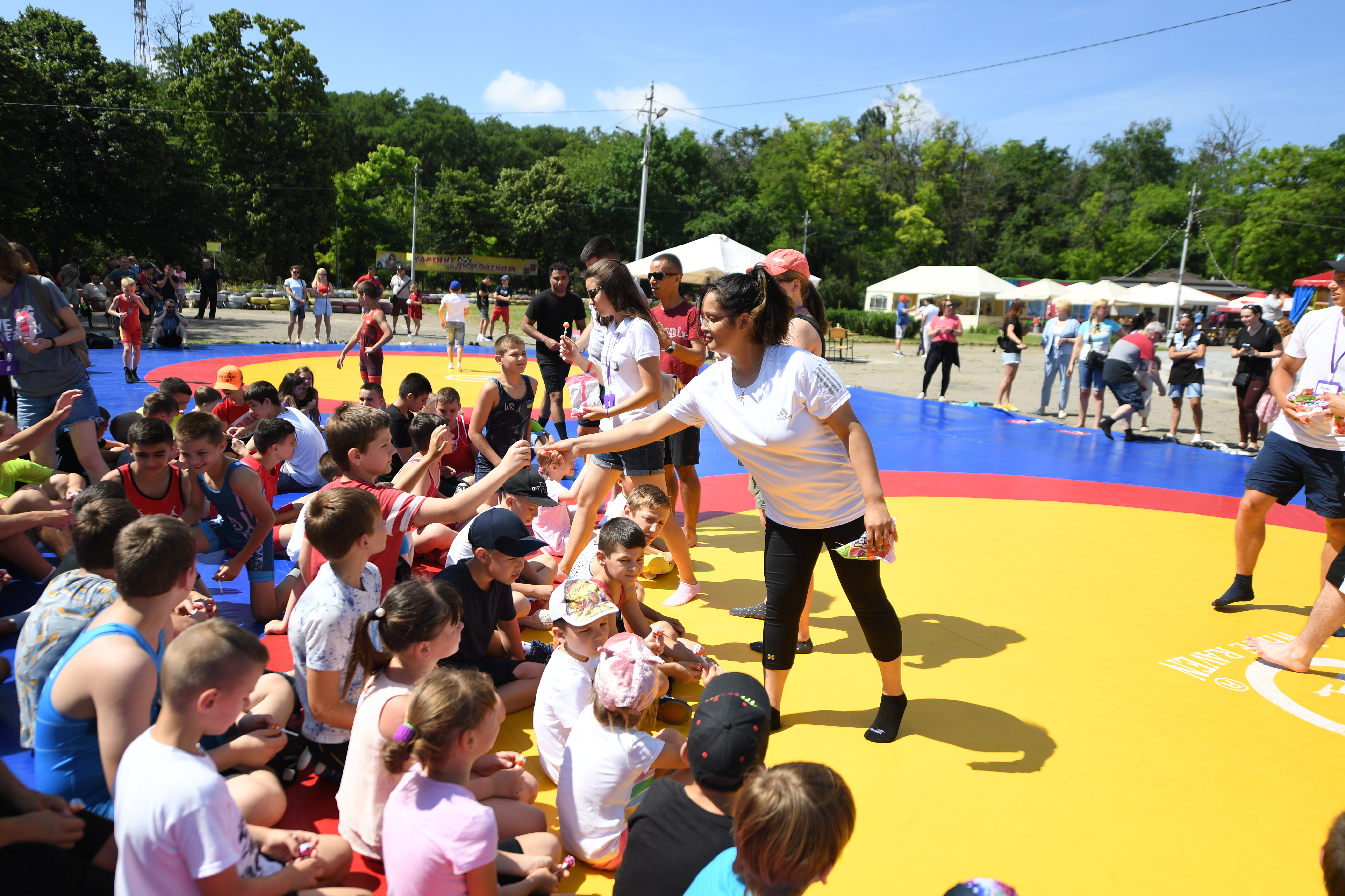 210703-N-VP310-0136 ODESA, Ukraine (July 3, 2021) Sailors from the Arleigh Burke-class guided-missile destroyer USS Ross (DDG 71) interact with Ukrainians in a local park in Odesa, Ukraine during Exercise Sea Breeze 2021, July 3, 2021. Exercise Sea Breeze is a multinational maritime exercise cohosted by U.S. Sixth Fleet and the Ukrainian Navy in the Black Sea since 1997. Sea Breeze 2021 is designed to enhance interoperability of participating nations and strengthen maritime security and peace within the region. (U.S. Navy photo by Mass Communication Specialist 1st Class Richard Hoffner/Released)