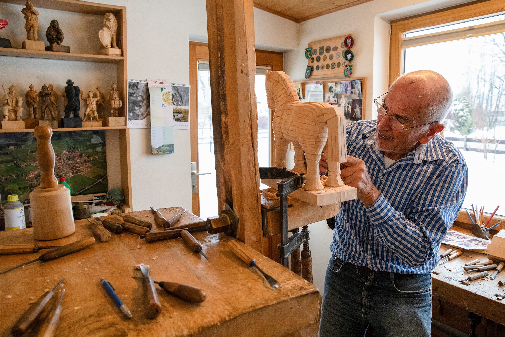 STUTTGART, Germany – Looking through the front window of a quaint country cottage nestled in the Bavarian hillside is a busy workshop where every surface is occupied. Tables are covered with chisels, some straight and flat while others curve to a point. Every wall is garnished with photos of friendly faces, some young and some old. The floor is littered with wood shavings of varying size and width, each falling from a work post following a precise stroke of a mallet on a chisel. Each shelf in the workshop is lined with figurines, all carved with care and now crowding around, watching their creator at work.