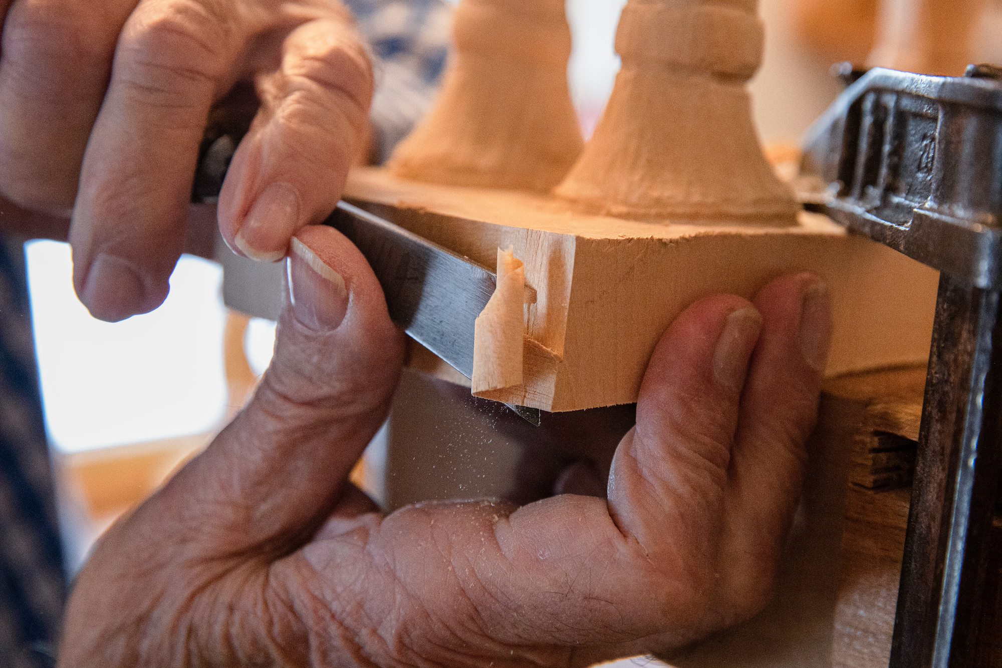 The renowned craftsman who calls this German cottage home has long been sought out to curate personalized pieces for customers inside and outside of the country. International awards that hang in his shop display his excellence. His tales of travels to Portugal and the United States are told cheerfully, but for this soft-spoken woodcarver, his greatest accomplishment is working with the “Quiet Professionals” he holds in the highest regard.