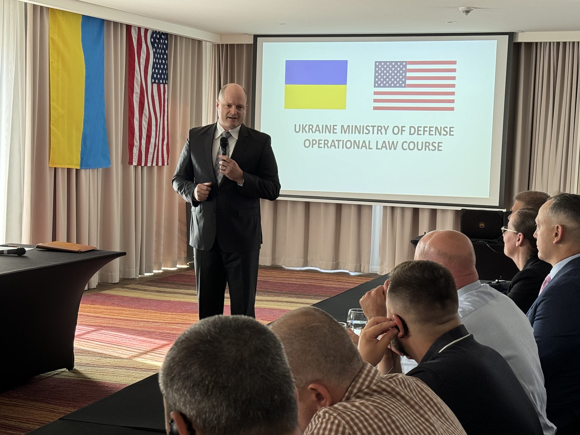 With Ukrainian operational legal advisors in attendance as students, the pilot course provided an opportunity for critique and adjustment before the Ukrainian Ministry of Defense permanently incorporates the curriculum into their training regimen. The training aims to inform deploying Ukrainian legal advisors about military operational law duties, to include ensuring Ukrainian military operations comply with the law of armed conflict, and equipping legal advisors to better identify Russian violations of the law of armed conflict.