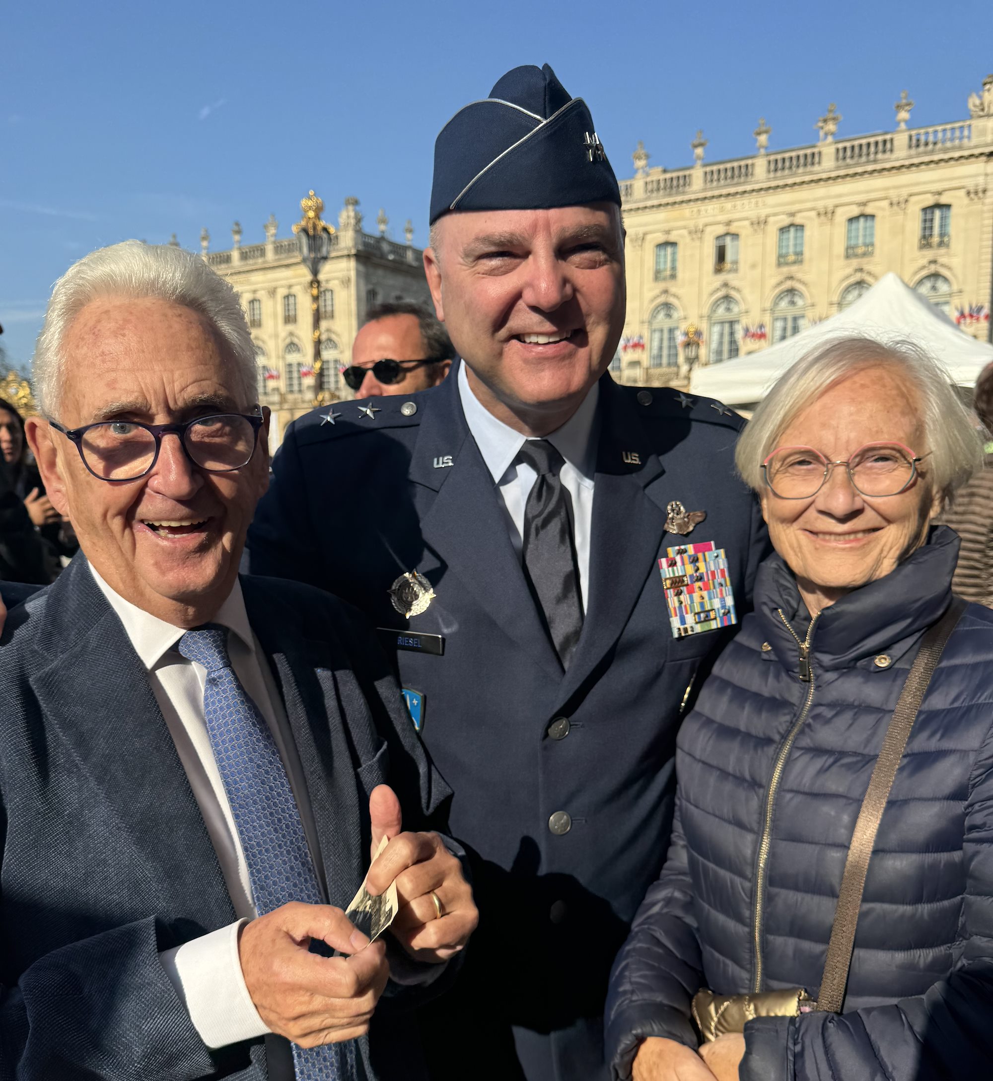 On Sept. 15, 2024, Maj. Gen. Kriesel, USEUCOM's director of exercises and assessments, had the pleasure of accepting Mayor of Nancy Mathieu Klein's invitation to join the 80th anniversary of Nancy's liberation by Allied and French resistance forces during WWII. During festivities that included French and U.S. color guards and events to commemorate the heroism and sacrifice of those service members who fought for freedom 80 years ago, Kriesel met a Nancy resident who was 4 years old (pictured being held by Gen. George Patton's driver) when the Third Army played a pivotal role in the town's liberation.