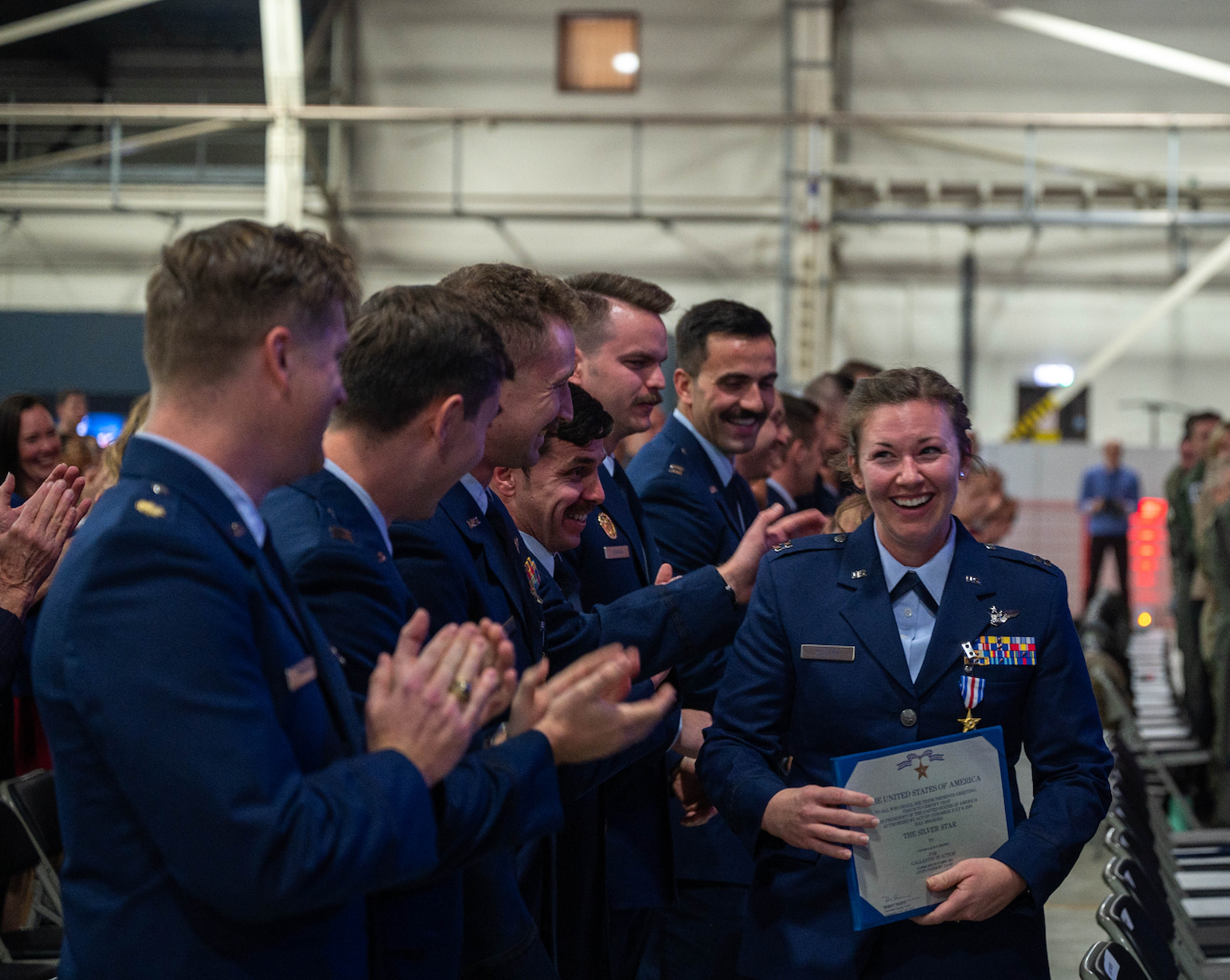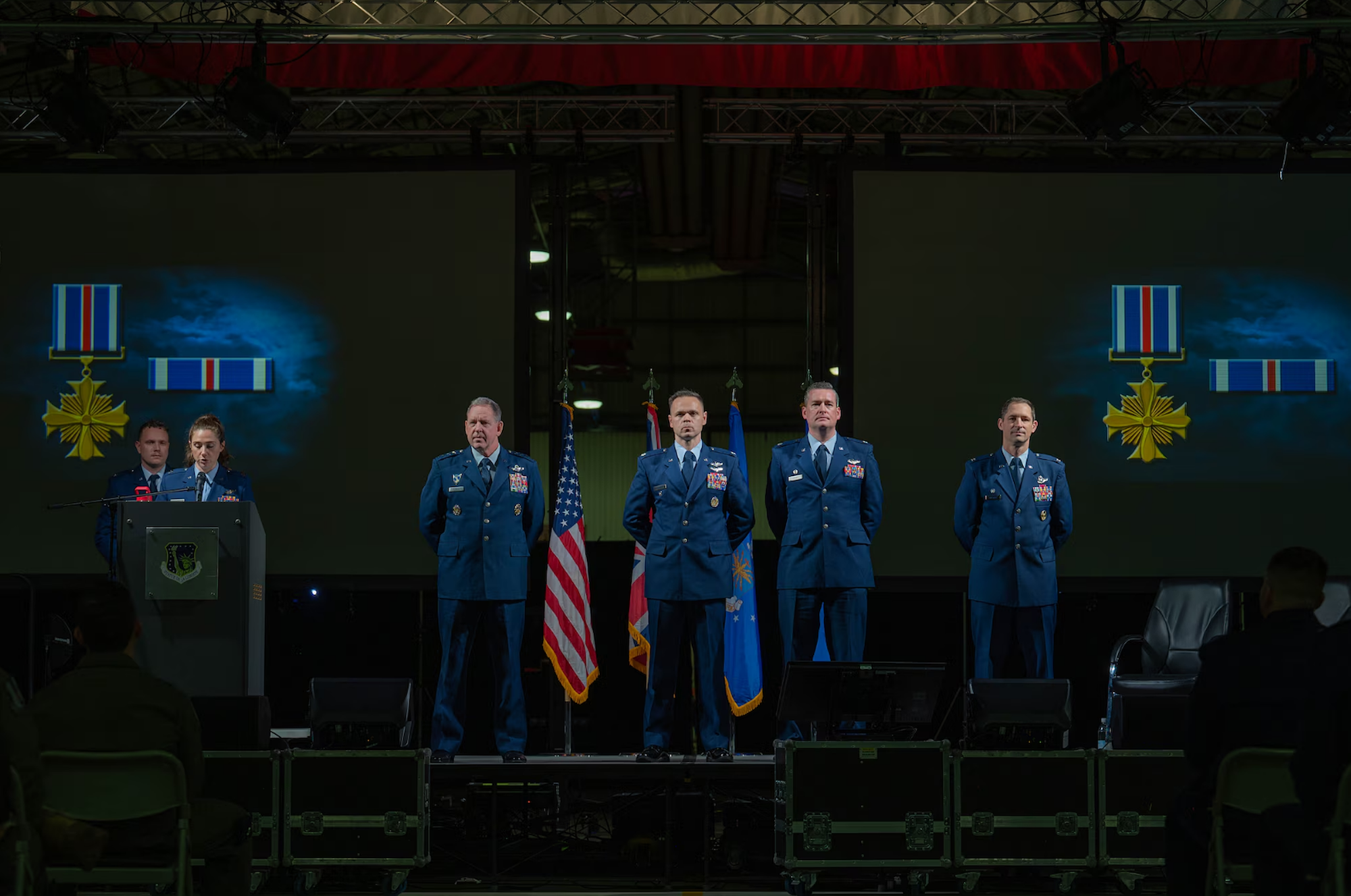 Gen. James Hecker, U.S. Air Forces in Europe – Air Forces Africa commander, presided over the ceremony along with Col. James Arthaud, 48th Fighter Wing commander. During the ceremony, they awarded two Silver Stars, six Distinguished Flying Crosses with the valor device, four Distinguished Flying Crosses with the combat device, four Distinguished Flying Crosses, two Bronze Stars, seven Air and Space Commendation Medals and seven Air and Space Achievement Medals.