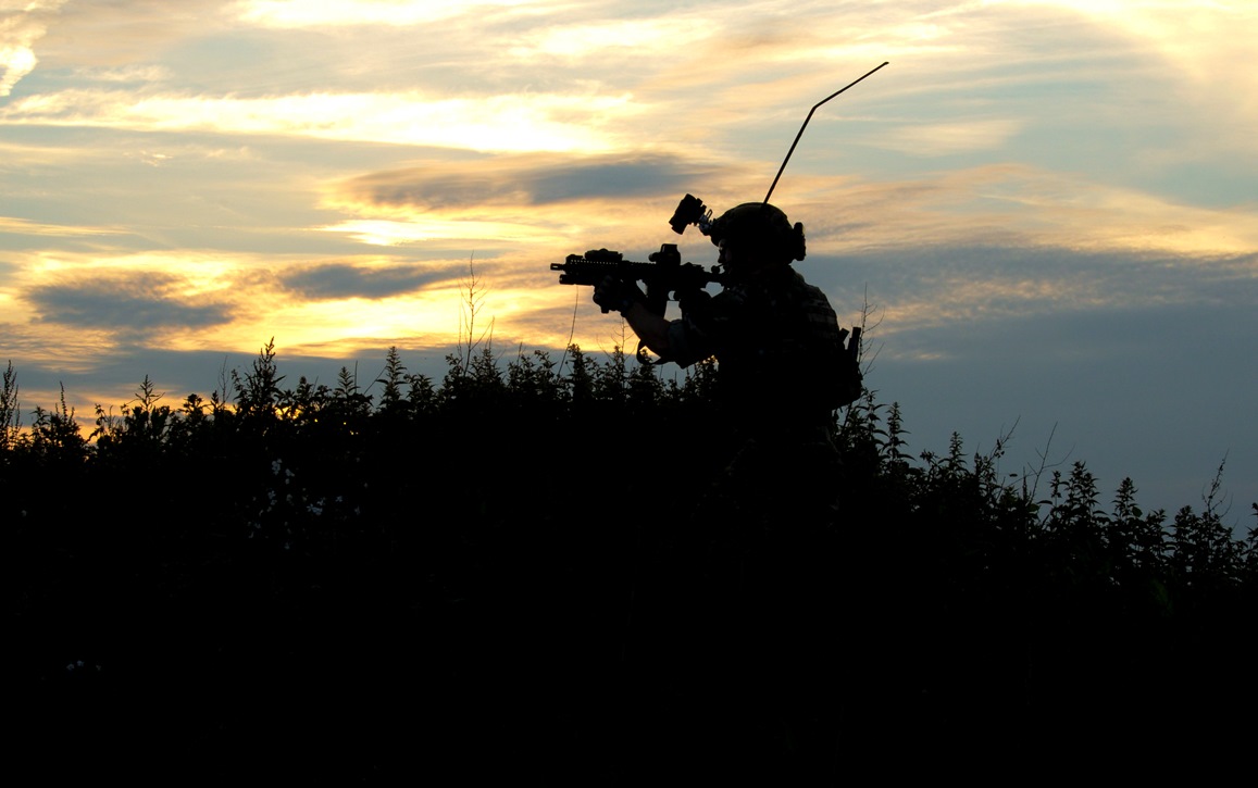 A Combat Rescue Officer from the 321st Special Tactics Squadron scans the perimeter while participating in an exercise June 25, 2015, at RAF Sculthorpe in Norfolk, England. Combat Rescue Officers, CRO’s, organize and strategize recovery missions, train and equip rescue personnel and manage and develop survival skills programs. (U.S. Air Force photo by Senior Airman Victoria H. Taylor)