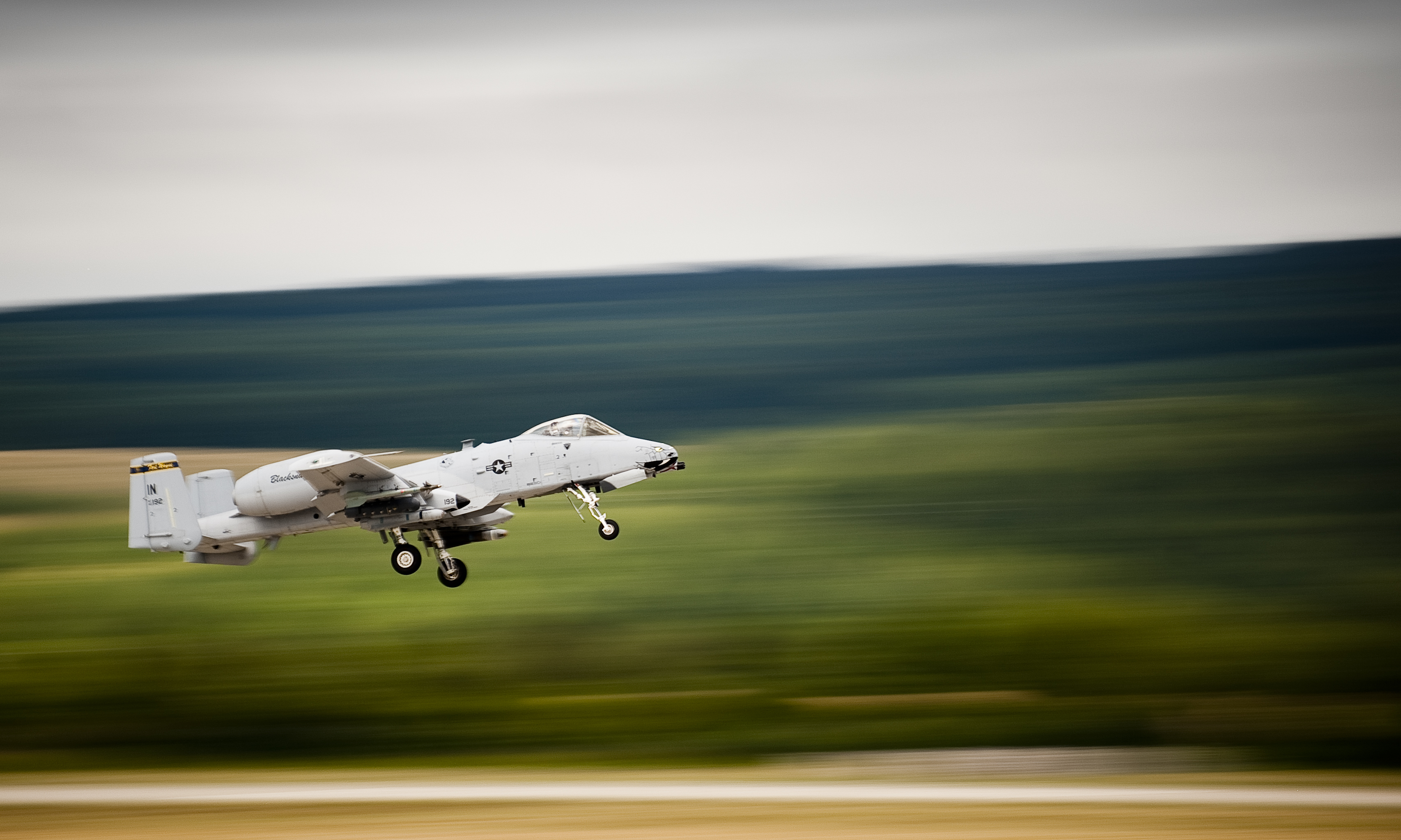 An A-10C Thunderbolt II “Warthog” aircraft from the 163rd Expeditionary Fighter Squadron, lifts into the air during Operation Atlantic Resolve, July 19, 2016, at Sliač Air Base, Slovakia. Airmen of the 163rd Expeditionary Fighter Squadron have been taking part in OAR to conduct training and familiarization events alongside our NATO ally, Slovakia. The U.S. presence in Europe and the relationships build over the past 70 years provide strategic access critical to meet our NATO commitment to respond to threats against our allies and partners. (U.S. Air National Guard photo by Staff Sgt. William Hopper)