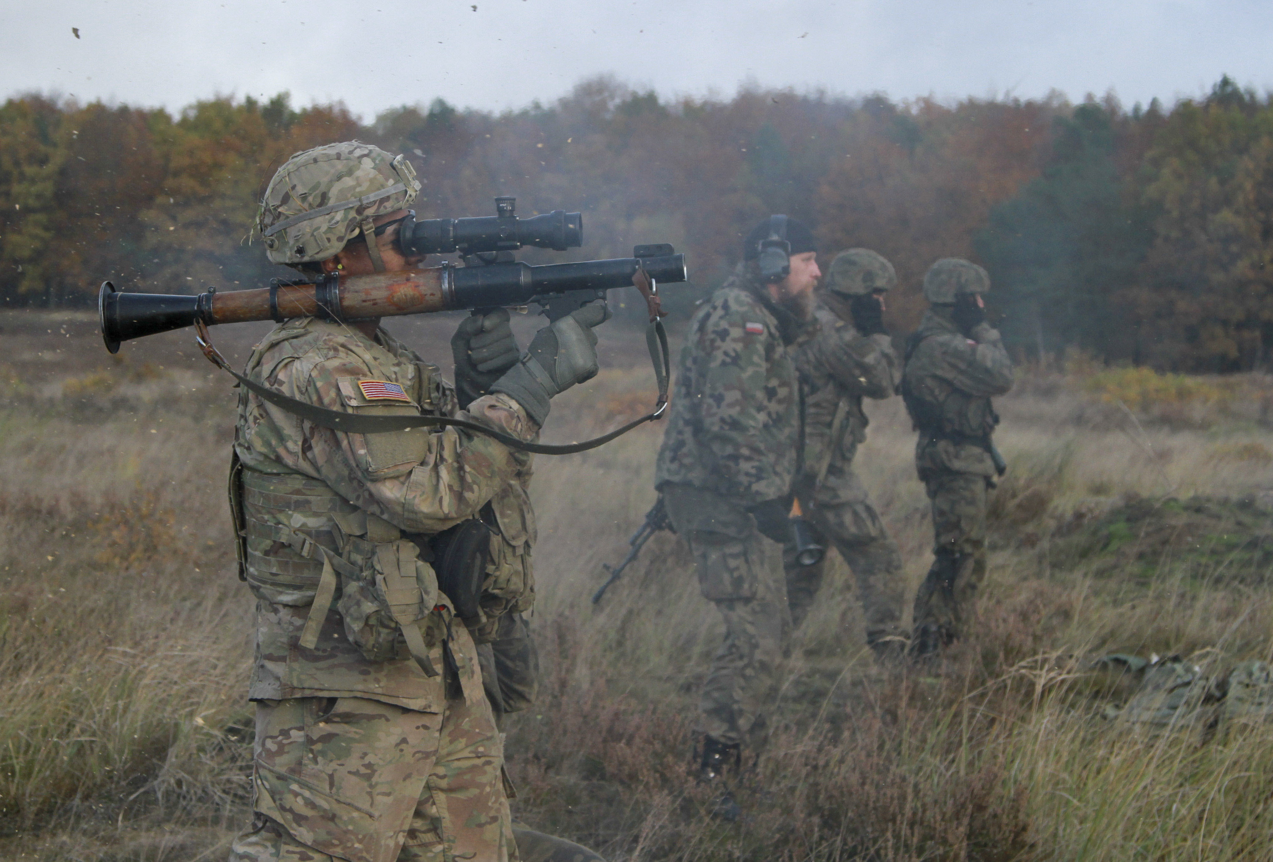 DRAWSKO POMORSKIE, Poland – Spc. Tamaricus Tanner, Paratrooper, Company D, 2nd Battalion, 503rd Infantry Regiment, 173rd Airborne Brigade, fires an RPG-7D Anti-Tank Grenade Launcher during anti-tank training in Studnica, Poland, Oct. 29, 2016. The training provided both U.S. and Polish forces cross training on the M136 AT4 anti-tank weapon and the RPG-7D Anti-Tank Grenade Launcher. The “Sky Soldiers” of D Co., 2nd Bn., 503rd Inf. Regt., are on a training rotation in support of Operation Atlantic Resolve, a U.S. led effort in Eastern Europe that demonstrates U.S. commitment to the collective security of NATO and dedication to enduring peace and stability in the region. (U.S. Army photo by Sgt. Lauren Harrah/Released)