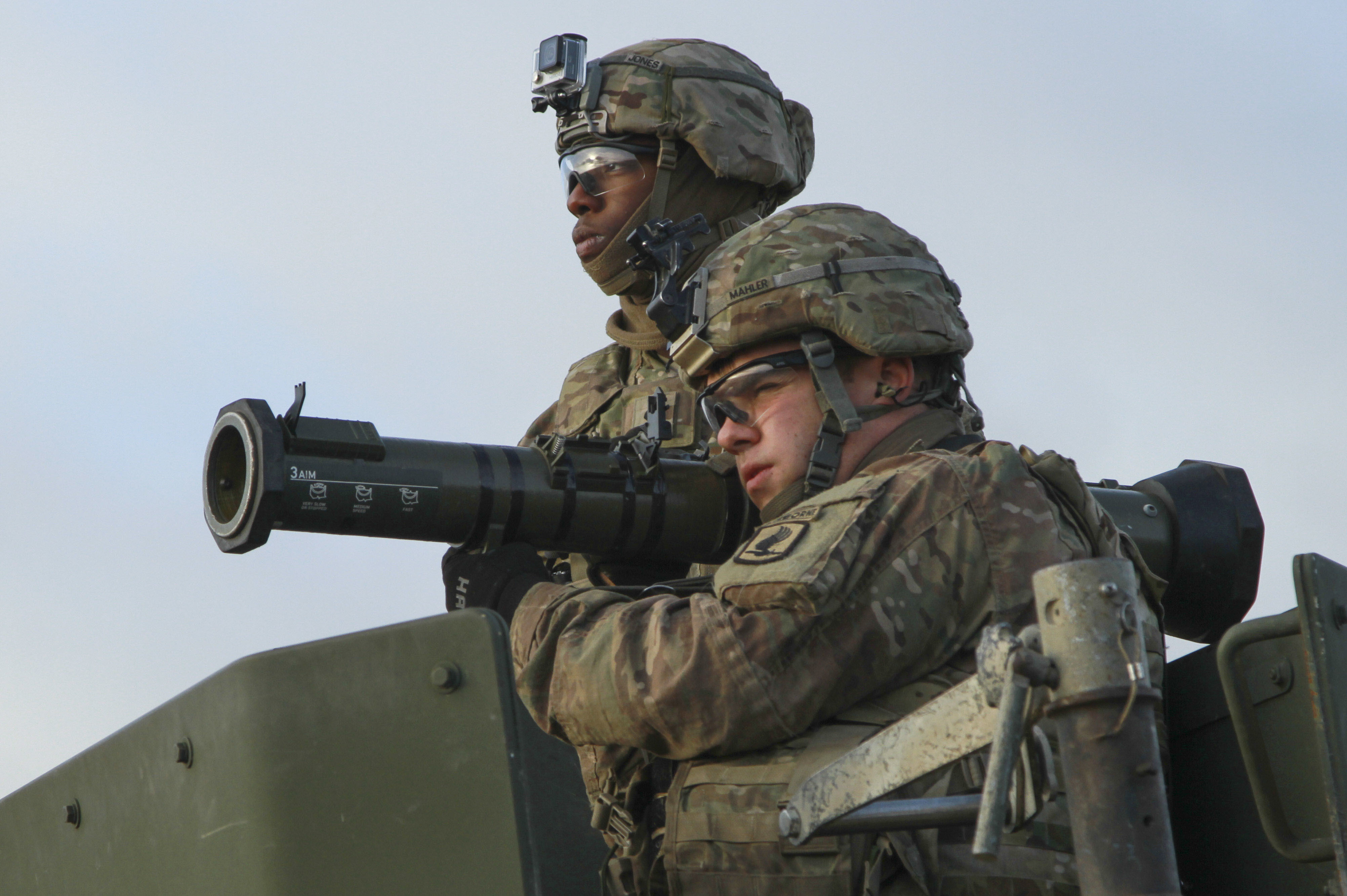 DRAWSKO POMORSKIE, Poland – Spc. Joseph Mahler, Paratrooper, Company D, 2nd Battalion, 503rd Infantry Regiment, 173rd Airborne Brigade, acquires his target and prepares to fire 9mm tracer rounds from an M136 AT4 anti-tank weapon alongside Spc. Jacquez Jones, Paratrooper, D Co., 2nd Bn., 503rd Inf. Regt., during anti-tank training with Polish allies from the 16th Airborne Battalion, 6th Airborne Brigade, in Studnica, Poland Oct. 29, 2016. Paratroopers were able to hone their marksmanship skills with the AT4 anti-tank weapon, RPG-7D Anti-Tank Grenade Launcher, M320 grenade launcher and .50-caliber machine guns. The “Sky Soldiers” of D Co., 2nd Bn., 503rd Inf. Regt., are on a training rotation in support of Operation Atlantic Resolve, a U.S. led effort in Eastern Europe that demonstrates U.S. commitment to the collective security of NATO and dedication to enduring peace and stability in the region. (U.S. Army photo by Sgt. Lauren Harrah/Released)