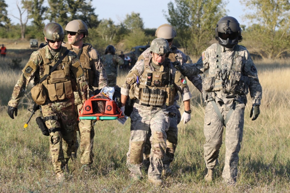 BUDAPEST, Hungary- Hungarian Special Operations service members conduct nine-line casualty evacuation training with the Army National Guard helicopter taskforce September 23. (Photo by Staff Sgt. Larraine Whetstone/24th Press Camp HQ)