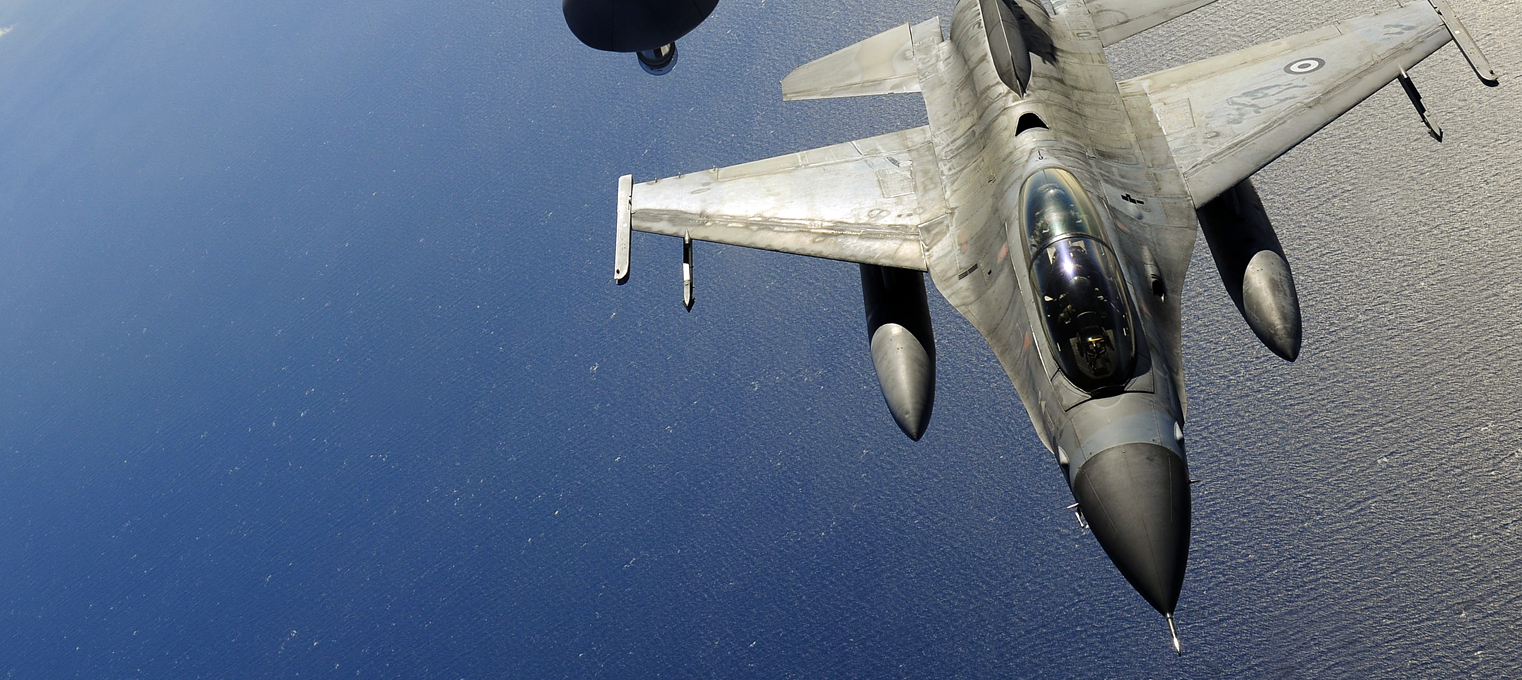 A Hellenic air force F-16 Fighting Falcon approaches a KC-135 Stratotanker, from the Arizona Air National Guard’s 161st Air Refueling Wing, during a flying training deployment, Jan. 27, 2017, at Souda Bay, Greece. The KC-135 refueled U.S. and Hellenic air force F-16s during the FTD, which was hosted to evaluate aircraft and personnel capabilities and increase interoperability between the two NATO allies. (U.S. Air Force photo by Staff Sgt. Austin Harvill)