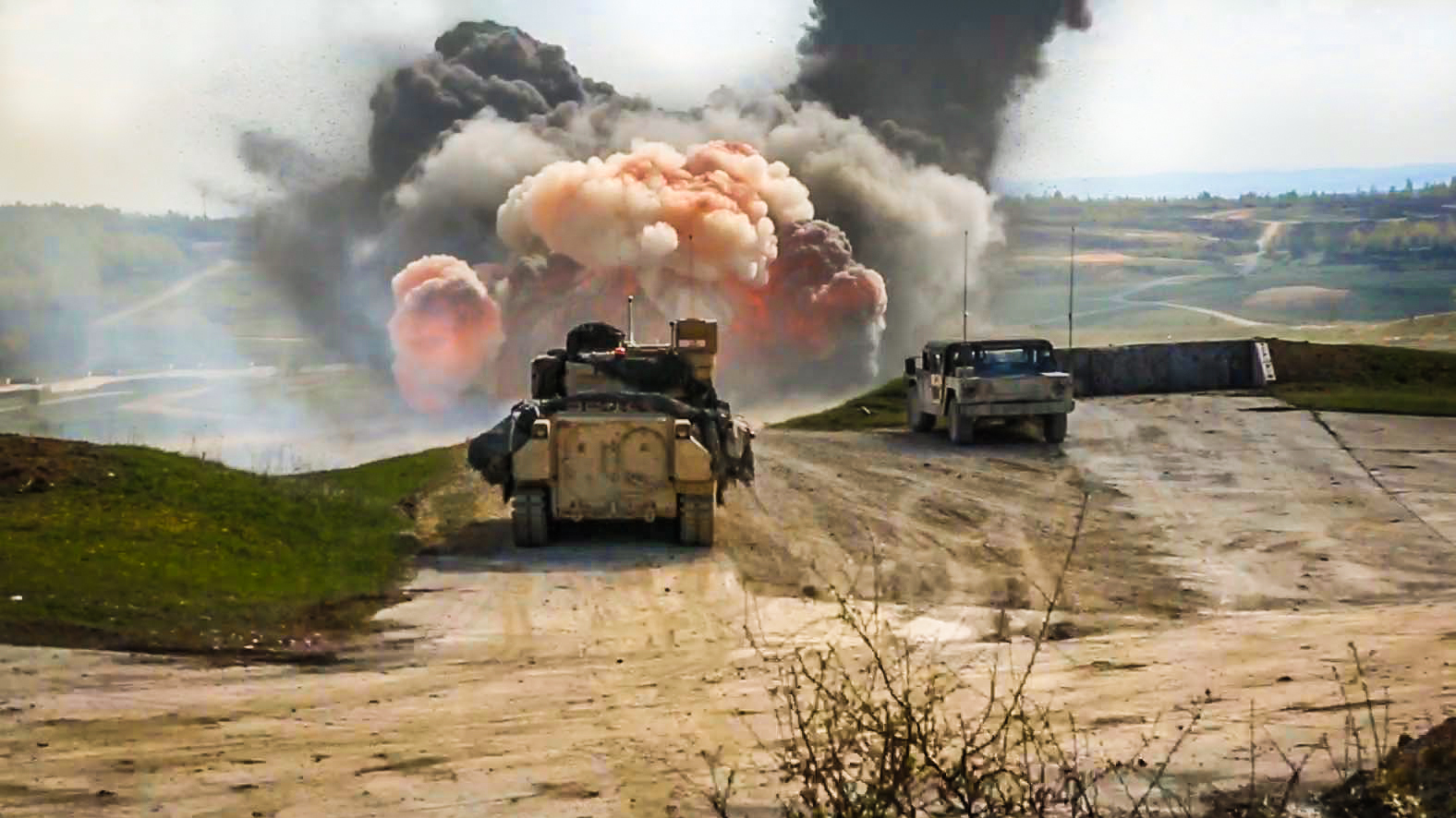 U.S. Soldiers attached to the 1st Battalion, 66th Armored Regiment, 3rd Armored Brigade Combat Team, 4th Infantry Division use a Line Demolition Charge System while coordinating an obstacle reduction mission during Exercise Combined Resolve VIII at the Grafenwoehr Training Area, Grafhenwoehr, Germany, April 24, 2017. Exercise Combined Resolve VIII is a multinational exercise designed to train the Army’s Regionally Allocated Forces to the U.S. European Command. Combined Resolve VIII will include more than 3,400 participants from 10 nations. The goal of the exercise is to prepare forces in Europe to operate together to promote stability and security in the region. (U.S. Army photo by Spc. Randy Wren)