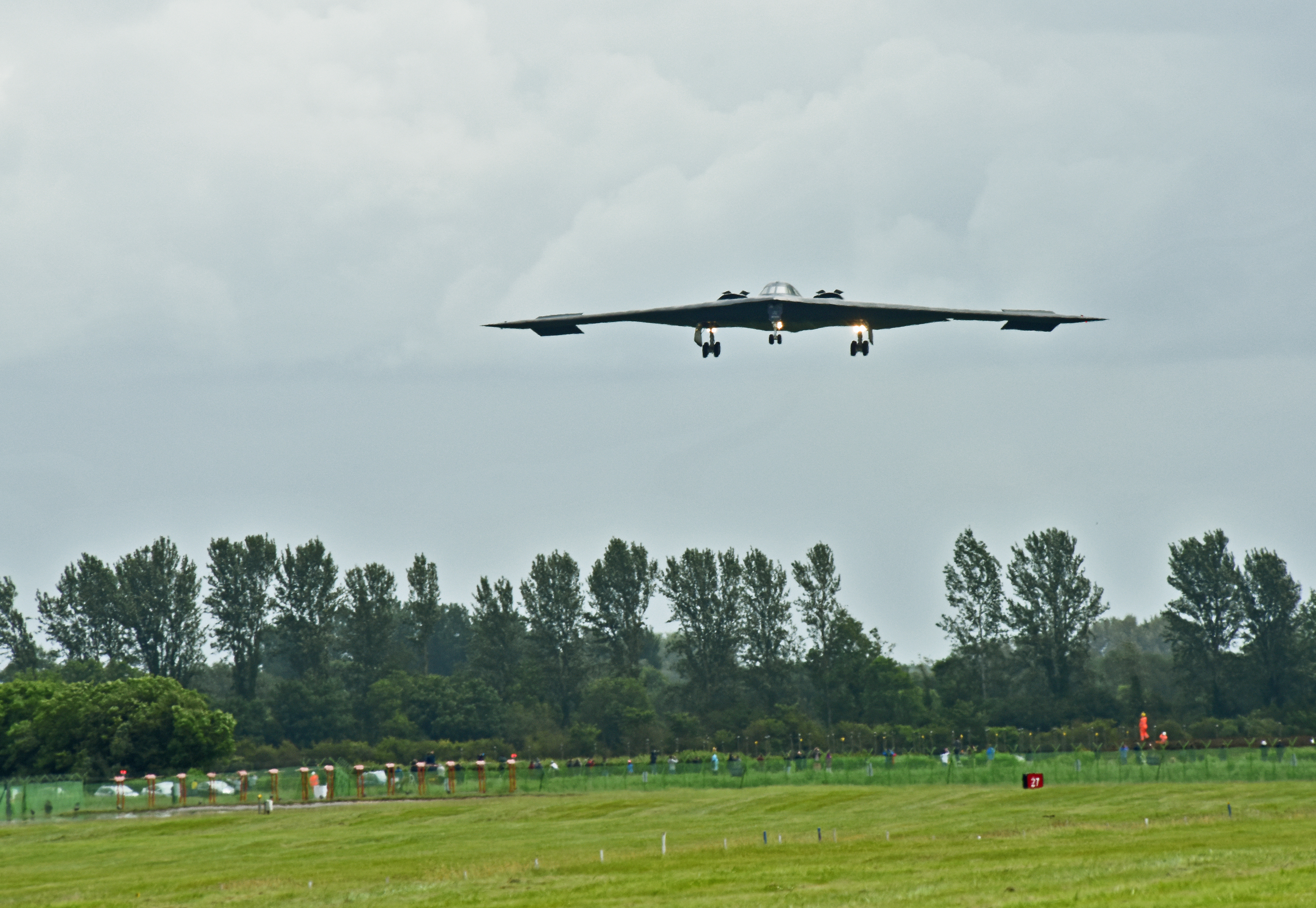 A B-2 Spirit deployed from Whiteman Air Force Base, Mo., approaches the runway at RAF Fairford, U.K., June 9, 2017. The B-2 routinely conducts bomber assurance and deterrence missions providing a flexible and vigilant long-range global strike capability, and is just one demonstration of the U.S. commitment to supporting global security. (U.S. Air Force photo by Tech. Sgt. Miguel Lara III)