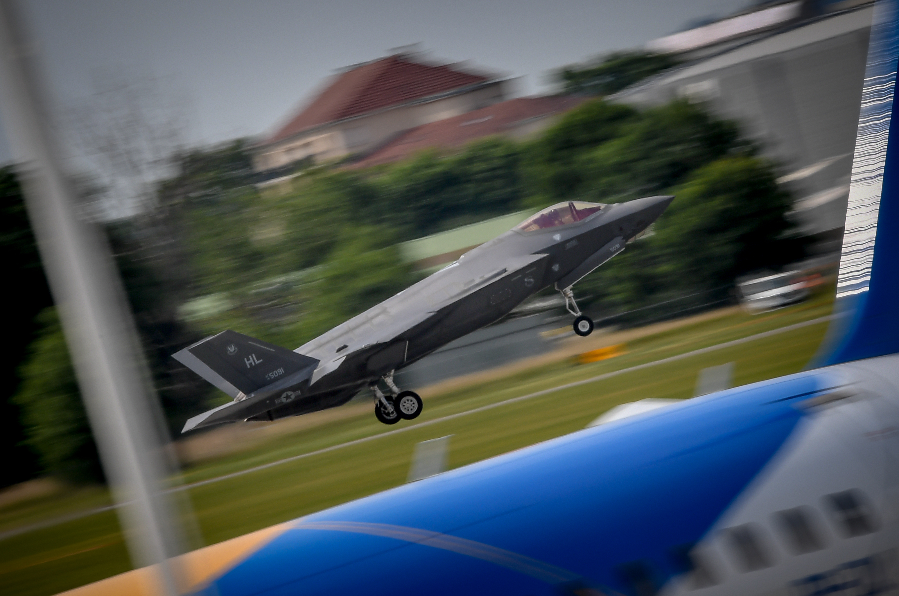 An F-35A Lightning II from Hill Air Force Base, Utah, lands after performing a flight demonstration at the Paris Air Show June 20, 2017 at Le Bourget, France. This is the first time the F-35 has performed aerial demonstrations at an international air show. Aside from the F-35, the U.S. has static displays of an F-16 Fighting Falcon, a CH-47 Chinook, an AH-64 Apache, a P-8 Poseidon, a C-130J Super Hercules and a CV-22 Osprey. The Paris Air Show offers the U.S. a unique opportunity to display their leadership in aerospeace and technology on an international scale. (U.S. Air Force photo/ Tech. Sgt. Ryan Crane)