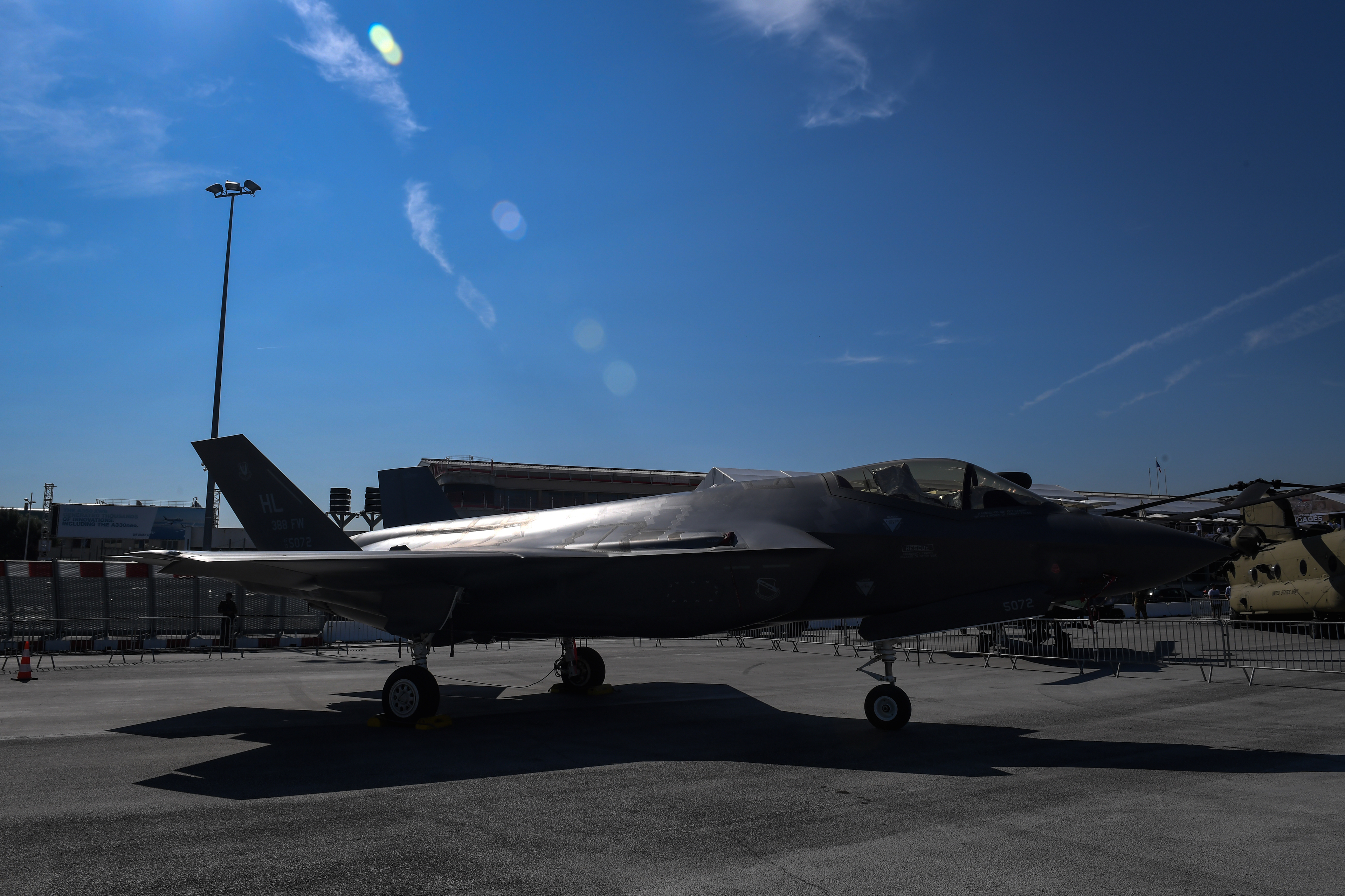 An F-35A Lightning II from Hill Air Force Base, Utah, is displayed in the U.S. corral at the Paris Air Show June 20, 2017 at Le Bourget, France. Aside from the F-35, the U.S. is displaying an F-16 Fighting Falcon, a CH-47 Chinook, an AH-64 Apache, a P-8 Poseidon, a C-130J Super Hercules and a CV-22 Osprey. The Paris Air Show offers the U.S. a unique opportunity to display their leadership in aerospeace and technology on an international scale. (U.S. Air Force photo/ Tech. Sgt. Ryan Crane)