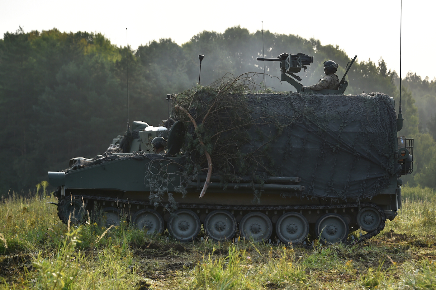 U.S. Soldiers with Bravo Battery, 3rd Battalion, 29th Field Artillery Regiment, 3rd Armored Brigade Combat Team, 4th Infantry Division, move their M992 field artillery ammunition support vehicle into position during a Fire Coordination Exercise at the 7th Army Training Command's Grafenwoehr Training Area, Germany, Aug. 21, 2017. (U.S. Army photo by Visual Information Specialist Gertrud Zach)