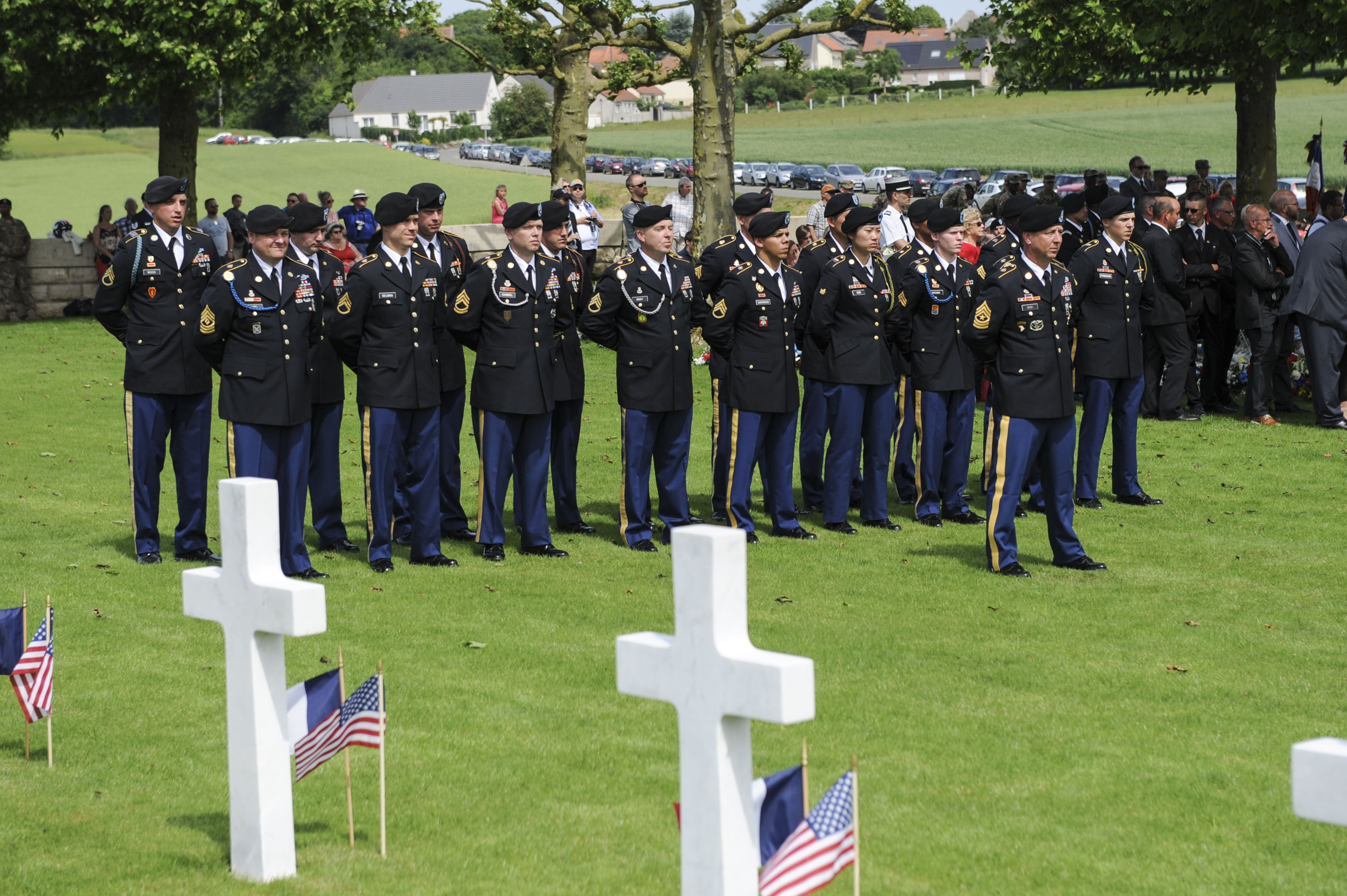 180526-N-FO714-024 SAINT-QUENTIN, France (May 26, 2018) Soldiers assigned to Headquarters, United States Army, Europe, attend a Memorial Day event at the Somme American Cemetery and Memorial in honor of those who perished during World War I. This week's memorial ceremonies honor the American fallen that fought and died 100 years ago. (U.S. Navy photo by Mass Communication Specialist 2nd Class Deanna C. Gonzales/Released)