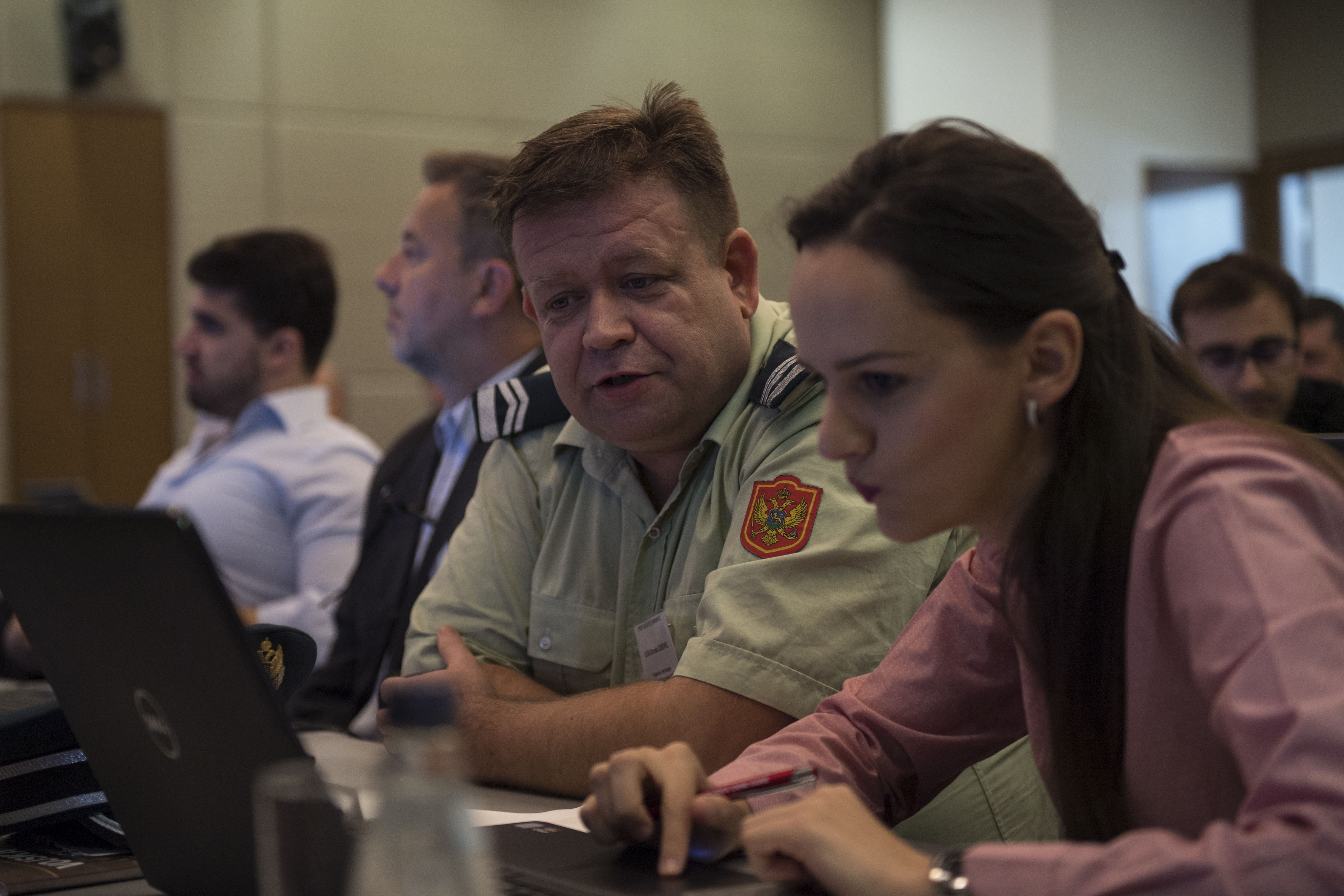 Sgt. Maj. Branko Corovic and Olga Vulevic, General Staff Administrators of the Armed Forces of Montenegro, conducts a defensive cyber exercise during Cyber Endeavor Cyber at Podgorica, Montenegro Sept. 26, 2018. Cyber Endeavor workshops are conducted four times a year at various locations in Europe, each with approximately 30 participants from allied and partner nations learning from USEUCOM subject matter experts. (U.S. Army photo by Spc. Craig Jensen)