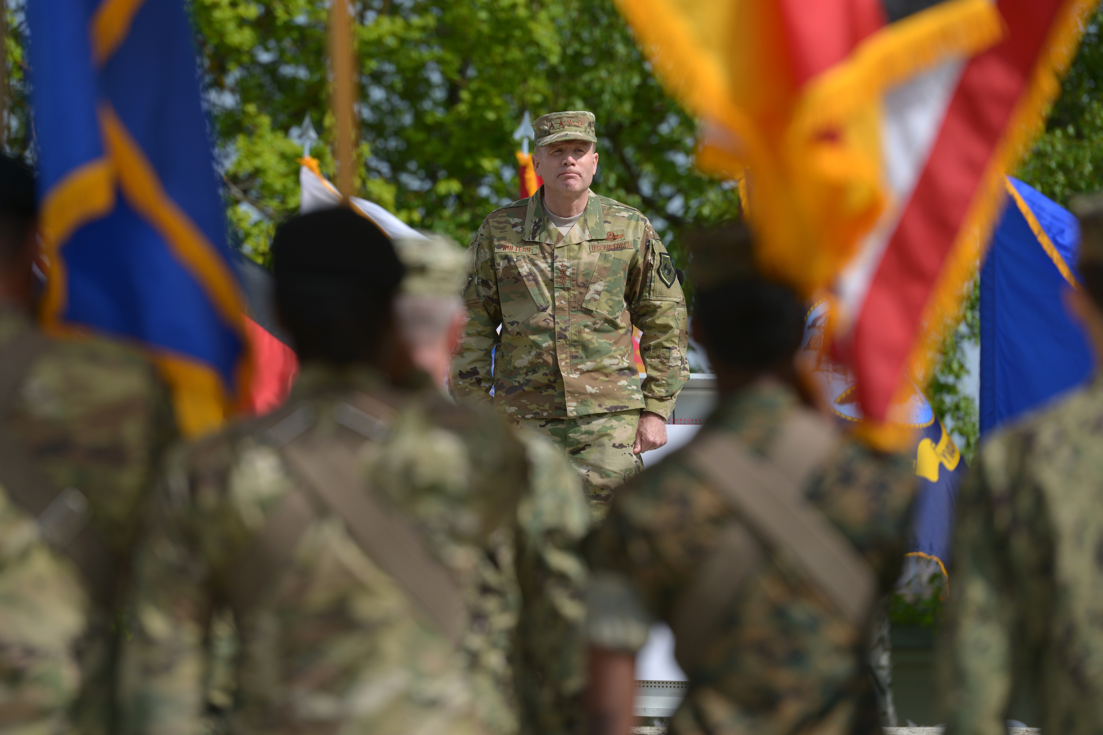 U.S. European Command (USEUCOM) hosts a Change of Command ceremony in which U.S. Army General Curtis M. Scaparrotti, Commander, United States European Command and NATO Supreme Allied Commander Europe relinquishes command to incoming USEUCOM Commander, U.S. Air Force General Tod D. Wolters. Also participating in the ceremony was Dr. Mark T. Esper, Secretary of the United States Army. This ceremony took place on Patch Barracks, Germany on May 02, 2019. (U.S. Army photo by Jason D. Johnston)