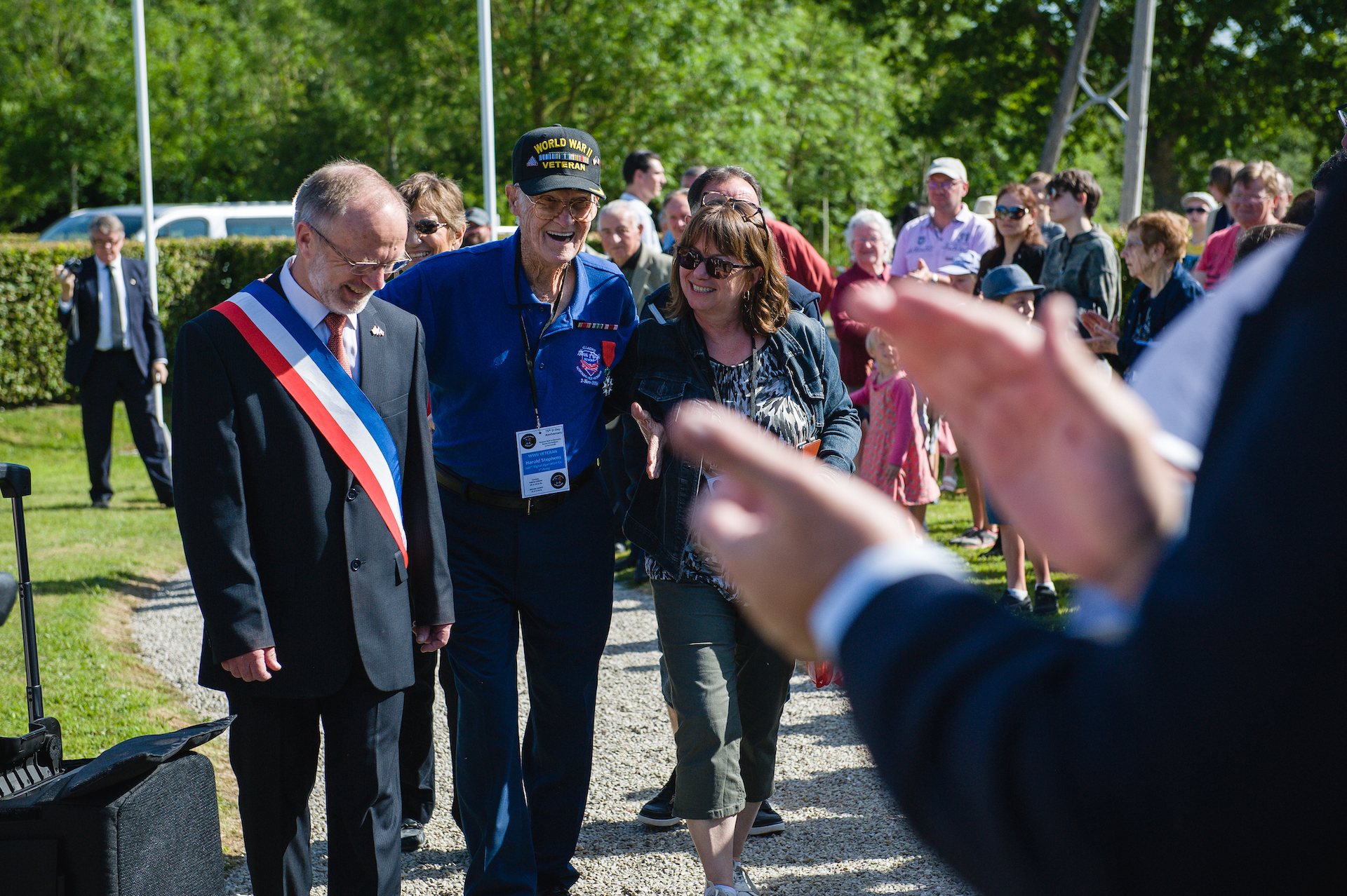 Mr. Harold Stephens, a World War II Veteran who served with 246th Signal Operations Company, 1st Army, participates in a memorial ceremony in Bricquebec-en-Contin, France, June 1, 2019. The annual ceremony is held to honor the lives of crewmen of the two B-17’s that were shot down near the towns of Bricquebec and Rocheville.