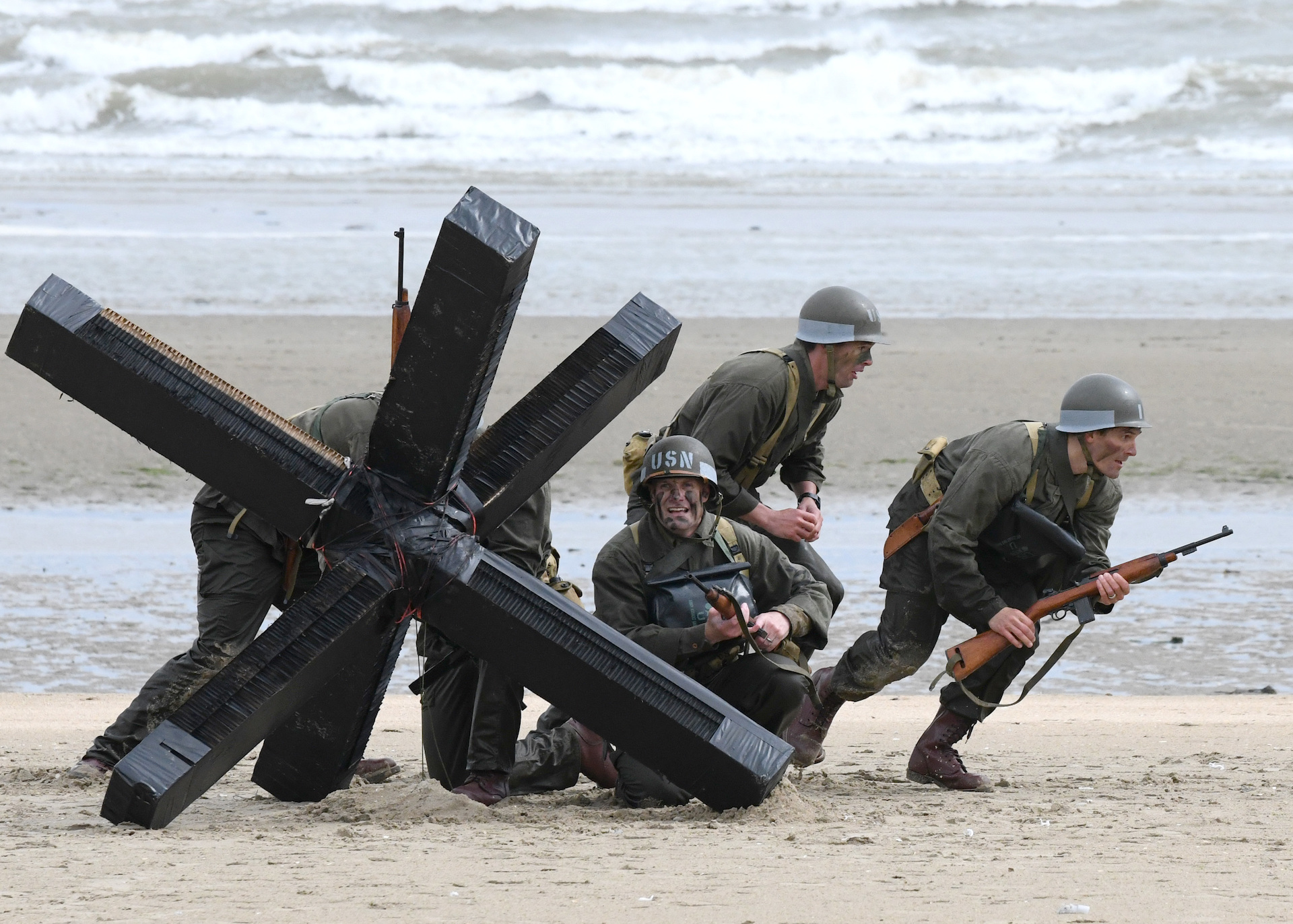 U.S. Navy SEALs assigned to Special Warfare Unit 2 re-enact the D-Day mission Navy Combat Demolition Unit Sailors conducted in the cover of darkness to clear the beaches for the main invading force on Utah Beach, June 6, 2019. More than 1,300 U.S. service members, partnered with 950 troops from across Europe and Canada, have converged in northwestern France to commemorate the 75th anniversary of Operation Overlord, the WWII Allied invasion of Normandy, commonly known as D-Day. Upwards of 80 ceremonies in 40 French communities in the region will take place between June 1-9, 2019. (U.S. Navy photo by Chief Mass Communication Specialist Michael McNabb/Released)